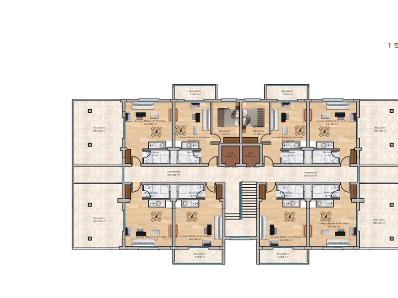 Проект состоит из 500 комфортабельных квартир-студио и квартир с одной спальней с видом на море, с балконов которых Вы будете встречать рассветы и провожать закаты.