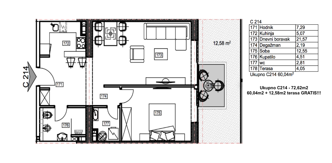 2-х комнатная квартира № С214 (высота четвертого этажа) с видом на море и Старый город в эксклюзивном мульти-комплексе «Porto Budva» с торговым центром 8000 м2 и СПА-центром 3500 м2 с широким спектром услуг, медицинским центром, открытым и крытым бассейнами!