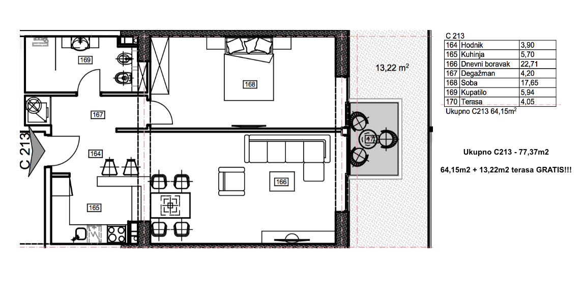 2-х комнатная квартира № C213 в эксклюзивном мульти-комплексе «Porto Budva» с торговым центром 8000 м2 иСПА-центром 3500 м2 с широким спектром услуг, медицинским центром, открытым и крытым бассейнами!