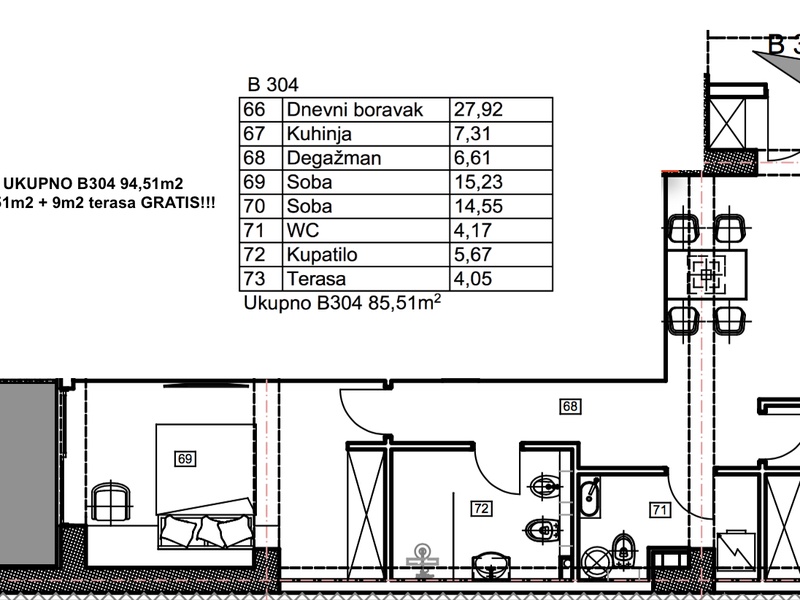 3-х комнатная квартира № В304 в эксклюзивном мульти-комплексе «Porto Budva» с торговым центром 8000 м2 и СПА-центром 3500 м2 с широким спектром услуг, конференц-залом и рестораном, открытым (28mx20mx1.8m) и закрытым бассейнами (20mx8mx1.8m)!