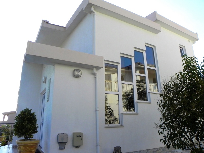 Дом расположен около 1,2 км от моря. Дом состоит из двух этажей.Первый этаж состоит из прихожей, большой гостиной, кухней с баром и обеденной зоной, ванная комната и одна спальня. Гостиная выходит на большую террасу с видом на море.