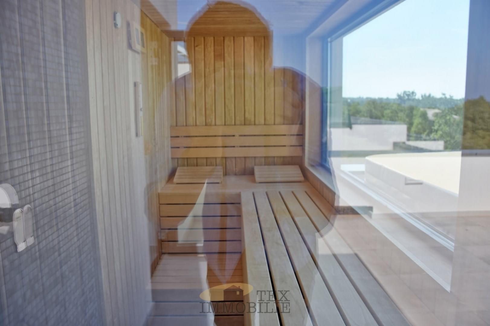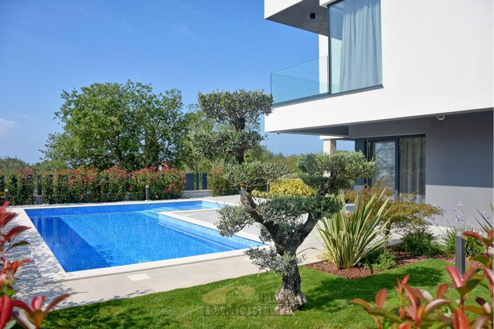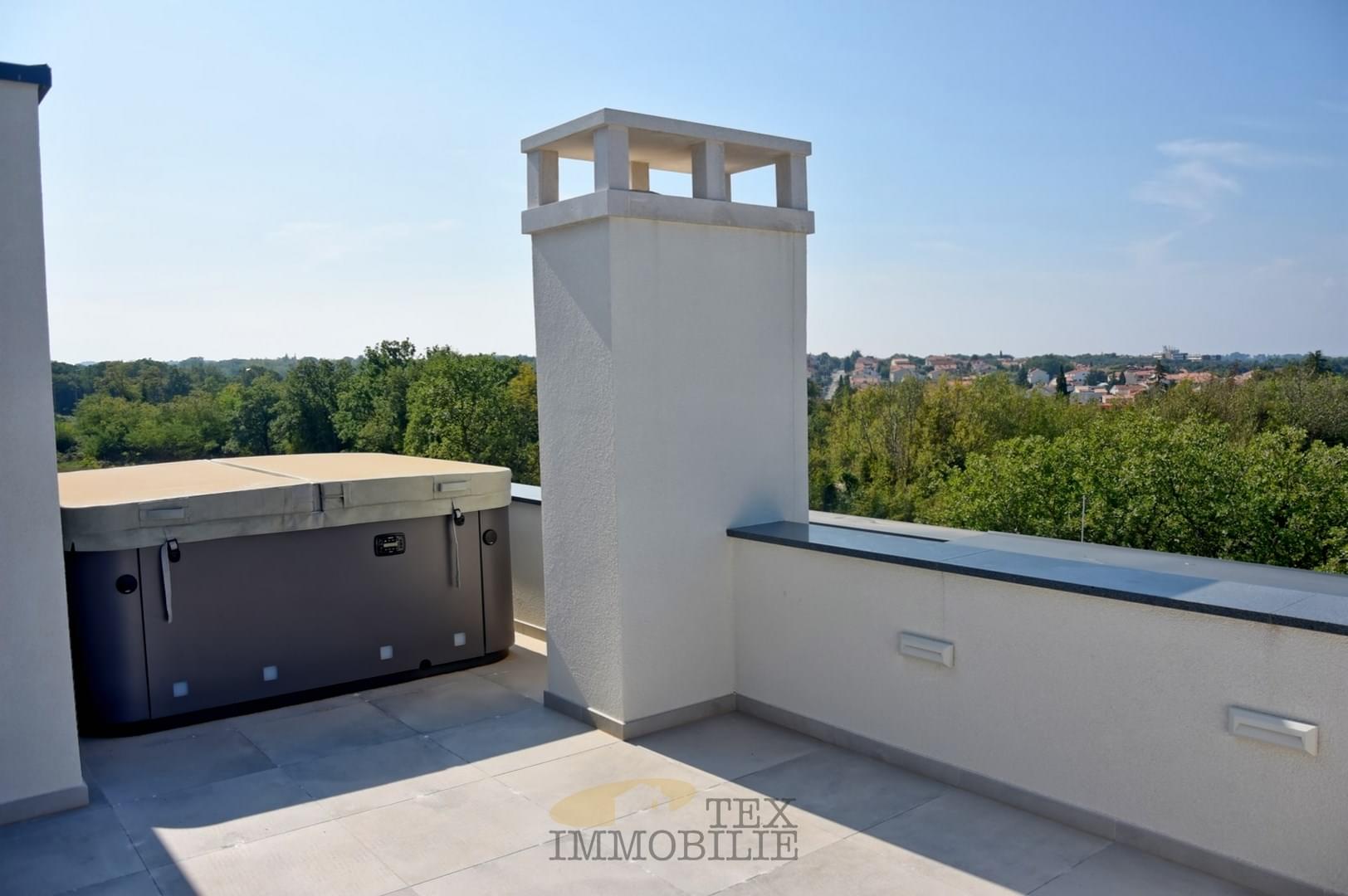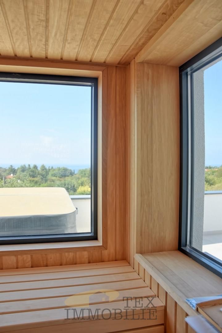 A new beautiful duplex apartment near Poreč, with beautiful sea view and landscapes.Fully furnished apartment extends on the first floor and the attic.On the first floor there are a living room with kitchen, bedroom, bathroom and terrace. In the attic there are 2 bedrooms and bathroom.