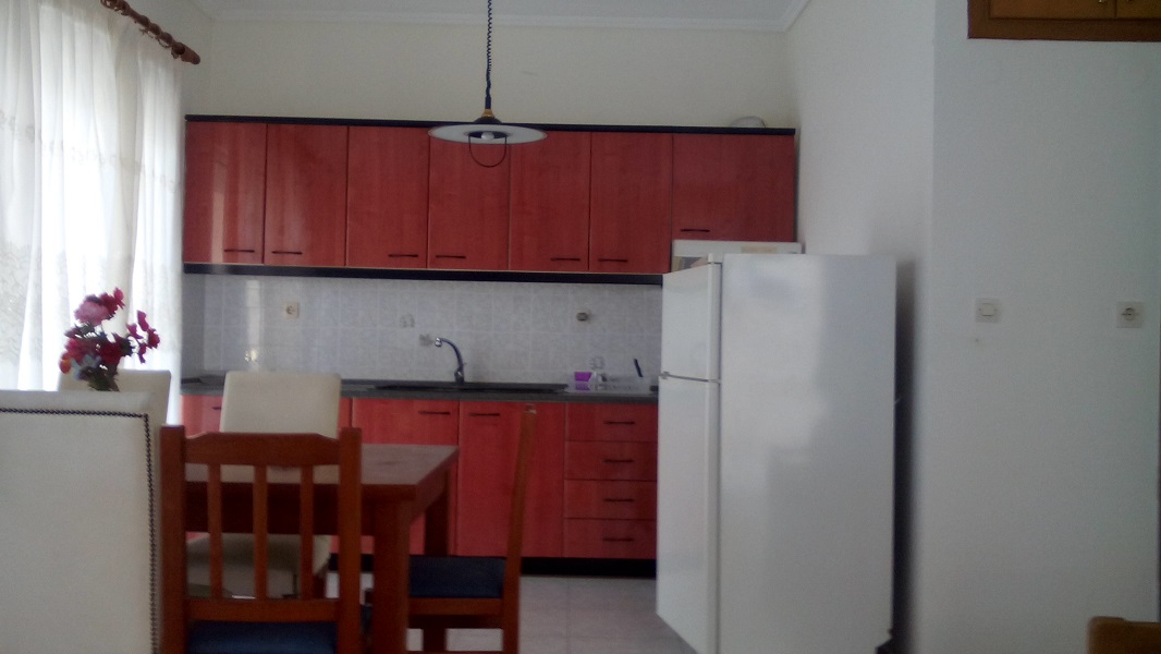 Сдается в аренду квартира расположенная на первом этаже дома в комплексе с благоустроенной территорией в популярном курортном поселке на полуострове Кассандра. Квартира состоит из гостиной объединенной с кухней, 2-х спальных комнат, 1 ванной комнаты. Площадь квартиры 60 кв.м. Имеет: кондиционер, телевизор, полностью оборудованную кухню с холодильником, электроплитой, вытяжкой, посудой и столовыми принадлежностями, стиральную машину, 1 парковочное место. Может разместить до 6 гостей. Расположена в 300 метрах от моря и в шаговой доступности от супермаркета, булочной, магазинов, кафе, ресторанов и другой инфраструктуры..