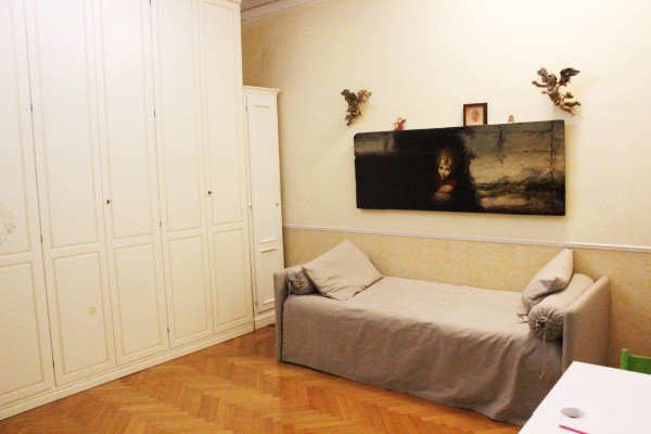 4х-комнатная квартира на втором этаже престижного дома с консьержем и изящным портико, общей сложностью 124 м2 при высоте потолков 3.5 м. Расположенная в близости к Центральному вокзалу и к центральной части города ( между via Melchiorre Gioia и Viale Lunigiana). Квартира состоит из двойной гостинной (диванная зона и обеденная), большой спальни и детской, ванной комнаты с санузлом и кухни. В частной собственности есть также оборудованная комната для гардероба на чердаке и подвал (кантина). Во всех комнатах – паркет. Оборудована паровым отоплением. Есть лифт.