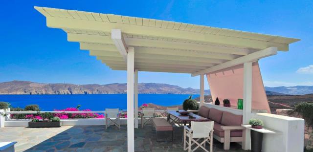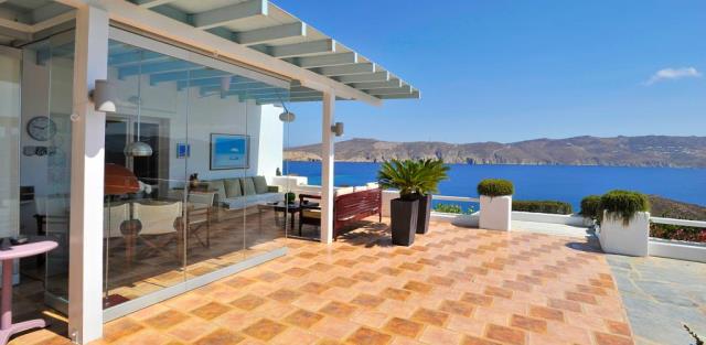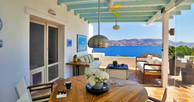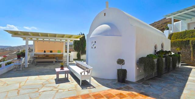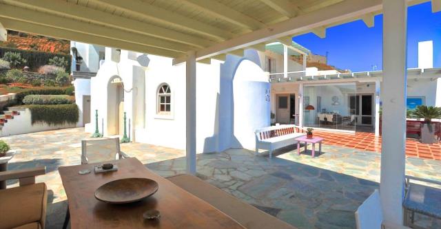 Продается квартира в вилле на острове Миконос греческий остров, один из островов Кикладского архипелага, расположен в центральной части бассейна Эгейского моря, береговая линия которого достигает 89 километров. Ближайшие к нему острова — Андрос, Делос и Тинос. Квартира состоит из гостиной, кухни, 2 спальни с ванными комнатами и гардеробными, а также дополнительная ванная комната. Во всех комнатах есть большие окна, даже есть окно на крыше, что позволяет большому количеству естественного света проникать в дом. Большие проемы также позволяют жителям наслаждаться видом, независимо от того, где они сидят. На уровне дома имеется большой двор, открытая жилая площадь с видом на юг, и вторая гостиная выходит на север; как в тени беседки. Существует также небольшая часовня с мраморным Темпло и оригинальными картинами. Со двора, через несколько ступеней попадаем на второй уровень, где строятся два гостевых домика. Они разделены тенистой верандой и у каждого есть большая спальня, санузел и гардеробная. На уровне ниже основного дома, есть гараж, который вмещает автомобиль, мотоцикл, и место для хранения необходимых инструментов. Рядом с ним есть еще одно крытое парковочное место. 2,000 кв.м участок включает в себя два входа на собственность и подъездные пути вокруг него, чтобы облегчить доступ к основному зданию, гостевым домам, гараж и два складских помещения. Это свойство, которое идеально подходит для легкой жизни: семьи и группы друзей. Дом был построен в 2004 году. Общая площадь дома составляет 194 кв.м.. Расстояние до аэропорта 17,20 км.