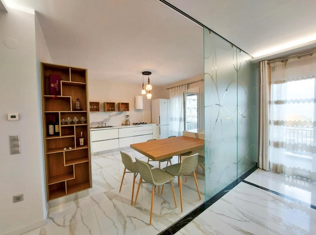 Просторные апартаменты с 2 спальнями находятся в городе Салоники, на первой береговой линии, напротив новой набережной и отеля «Македония Палац», недалеко от центра города. Это район с хорошо развитой городской инфраструктурой – все необходимое для жизни расположено в минутах ходьбы от дома.