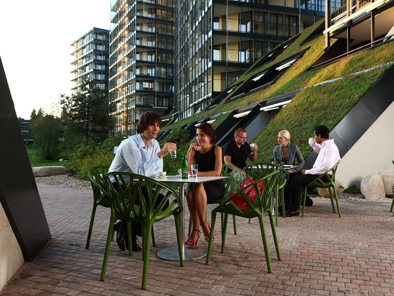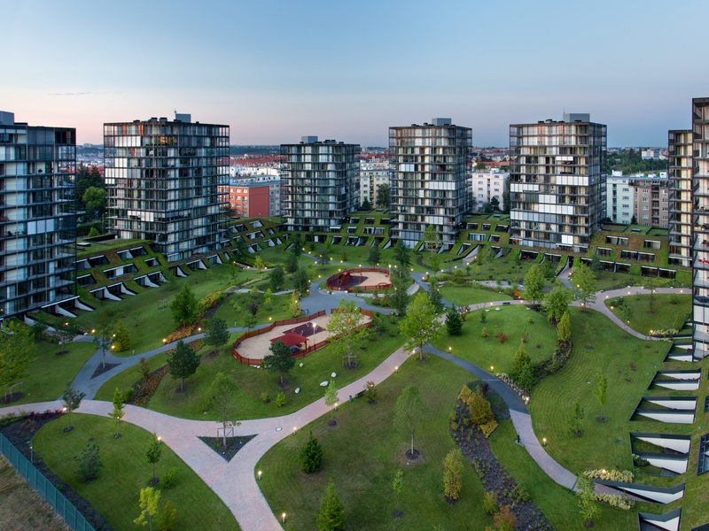 Для жителей комплекса Central Park Praha, есть просторный частный парк и ресторан. Все входы в здания комплекса, паркинг и территорию внутреннего парка - только с чипом безопасности.