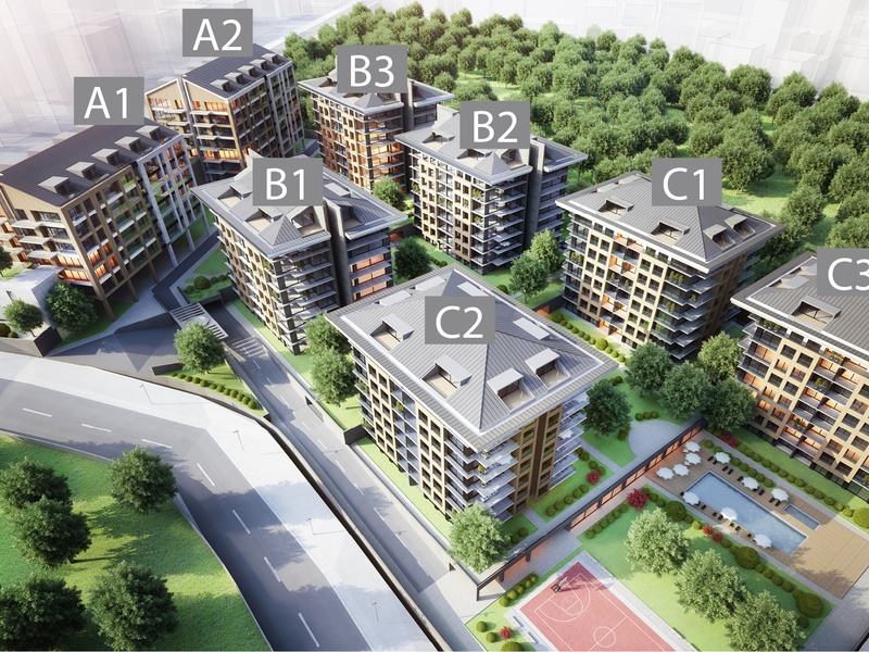 Проект состоит из 8 блоков, 323 квартир, 20 коммерческих помещений. 15,000 кв.м. обустроенной зеленой территории – теннисный корт, поле для мини футбола, баскетбола, детская площадка , бассейн, сайна, фитнес, теннисные корты и др.