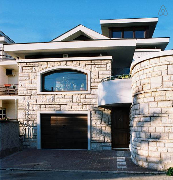 House (650 m2) with an outdoor swimming pool, sauna, 3 Jacuzzi tubs (one of them is for two people), underwater pool window and many more features. Suitable for a bigger family, 2 couples (+ 3 singles) or 5 singles. Quiet neighbourhood with fresh air and beautiful view, close to the main city squares (10-15 minutes by car). With all the interior imported from Italy and carefully arranged.