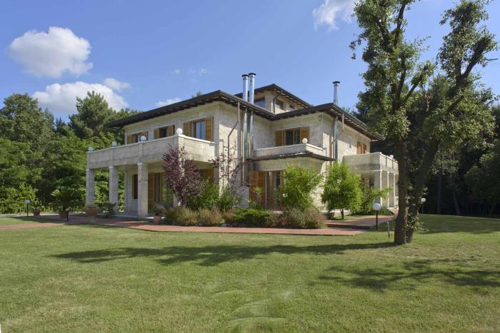 В 700 метрах от моря продается меблированная вилла в Марина дей Ронки, регион Тоскана. Общая площадь виллы составляет 561 кв.м., 4 этажа. Первый этаж: двойной салон разделенный колоннами из мрамора (45 и 52 кв.м.), гостиная с камином (26 кв.м.), кухня (20 кв.м.) с кладовой комнатой (9 кв.м.), спальная (15 кв.м.) с ванной комнатой (7 кв.м.), вторая ванная комната из салона (9 кв.м.), 2 террасы (30 кв.м. и 98 кв.м.), портик при входе в дом (13 кв.м.) Второй этаж: 1-я спальная (37 кв.м.) с ванной (12 кв.м.) , 2-я спальная (19 кв.м.) с ванной (10кв.м.), 3-я спальная (16 кв.м.) и 4-я спальная (15 кв.м.) имеют общую ванную комнату (9 кв.м.), четыре террасы (общей площадью 72 кв.м.) Третий этаж: мансарда (30 кв.м.), 2 террасы (10 и 24 кв.м.) Подвальный этаж: двойная летняя кухня с камином, раделенная колоннами из мрамора (52 и 56 кв.м.), сейфная комната (10 кв.м.), туалетная комната, бройлерная, прачечная. Вилла окружена садом площадью 5200 кв.м. , имеется колодец. Вилла полностью отделана травертиновым камнем ( мрамором) тем же, из которого построен Колизей. Потолок мансардного этажа отделан каррарским мрамором. Входные двери сделаны в 1400 году. Соседними виллами владеют знаменитый футболист Джанлука Буффон и знаменитый тенор Андреа Бочелли.