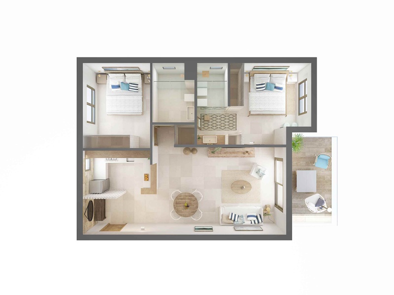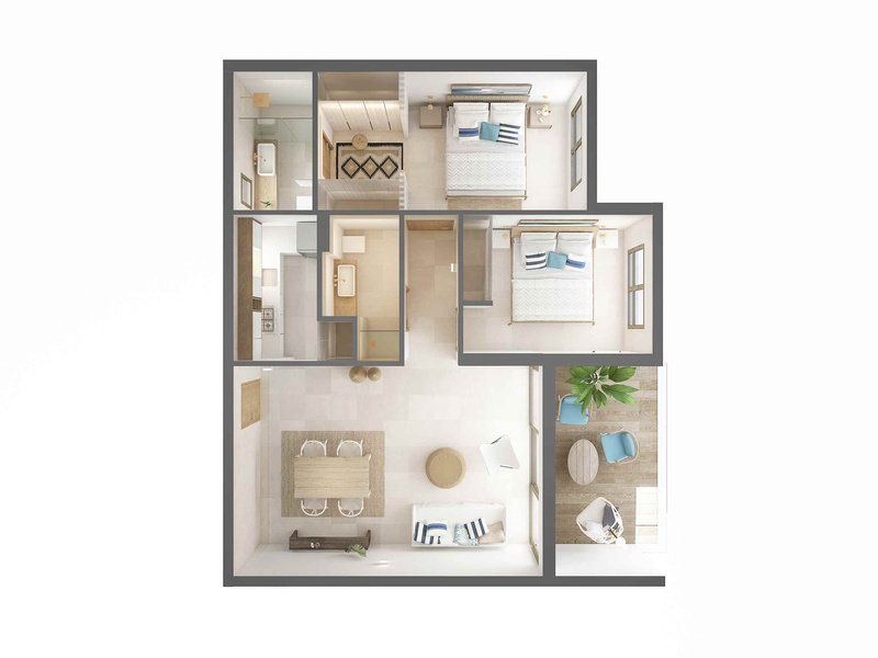 Эксклюзивный жилой комплекс, состоящий из 32 апартаментов с двумя спальными комнатами и просторными открытыми террасами.