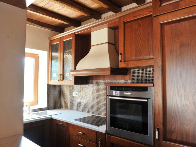 На первом этаже располагаются гостиная с полностью укомплектованной кухней, санузел, кладовая. Кухонная мебель изготовлена из массива дерева.