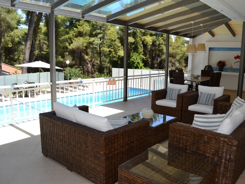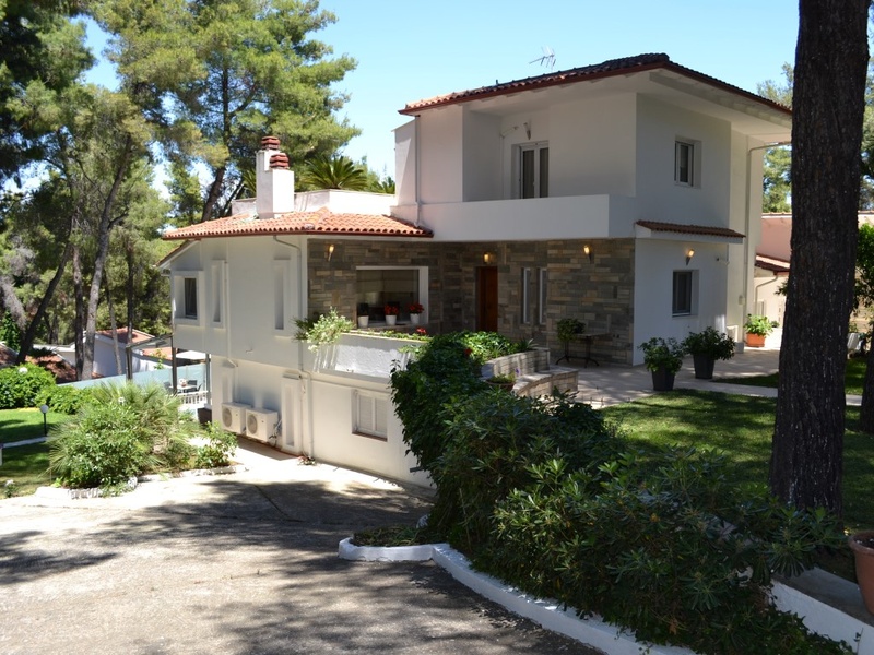 Продается 2-этажная вилла площадью 552 кв.м на полуострове Кассандра, региона Халкидики. Первый уровень состоит из 5 спальных комнат, 2 гостиных с кухней, гостиной, 2 ванных комнат, 2 душевых комнат. Второй уровень состоит из 5 спальных комнат, 3 ванных комнат. Имеет вид на лес, также есть мебель, камин, кондиционер, тенты, бассейн, парковочное место, сад, газон, барбекю, отопление, подсобное помещение.