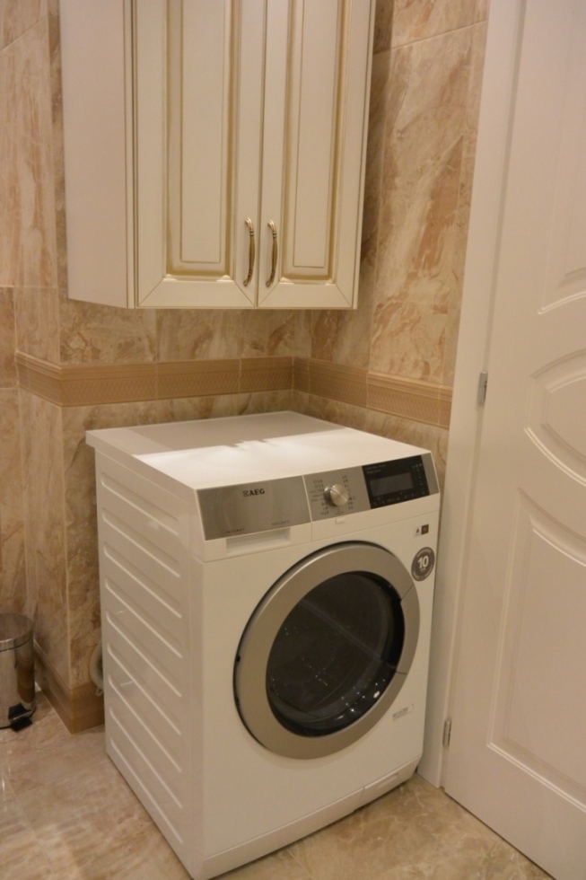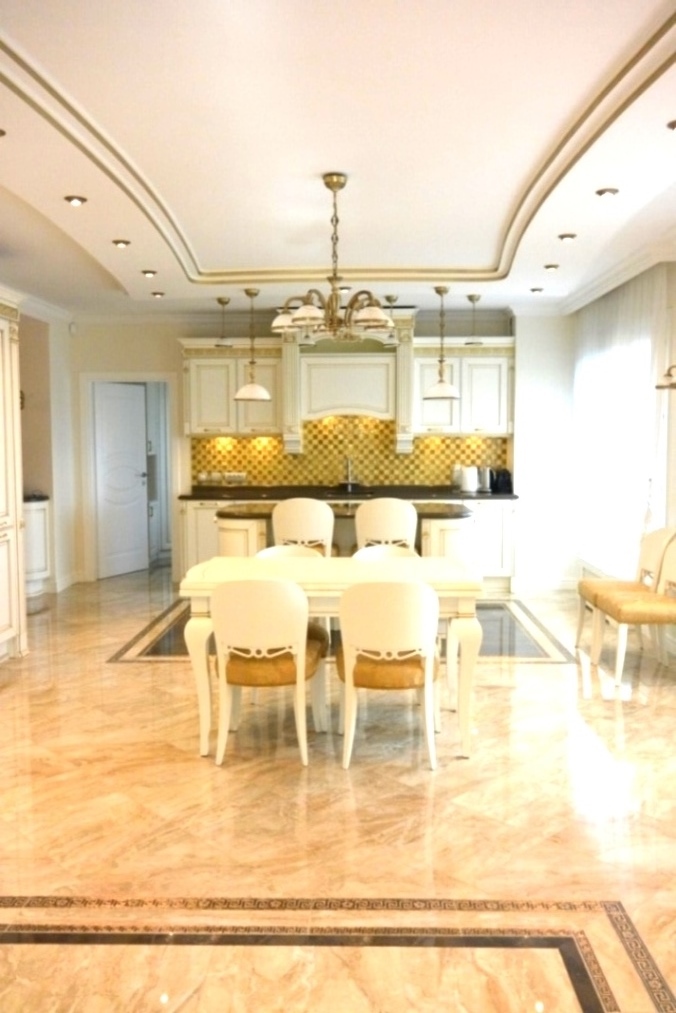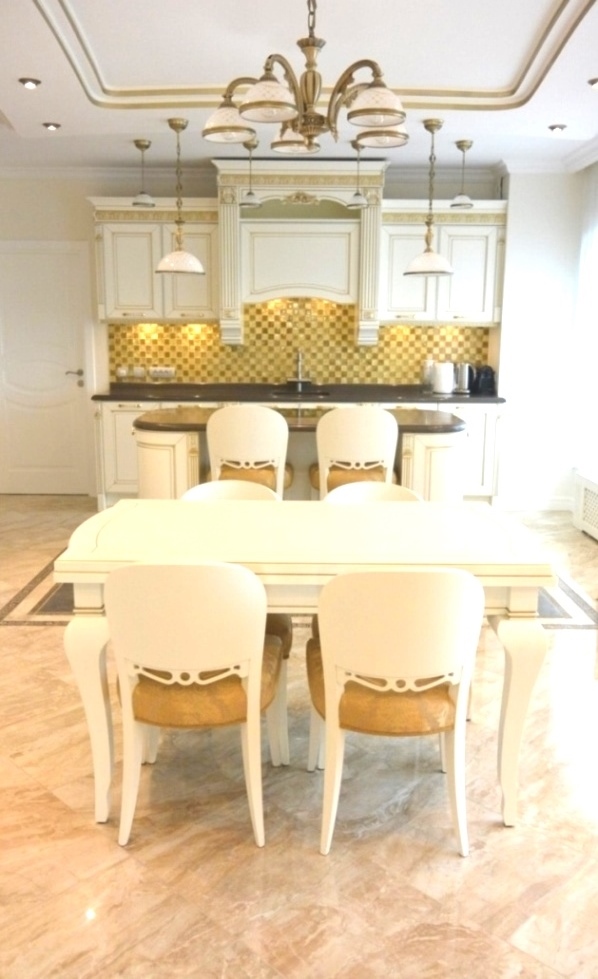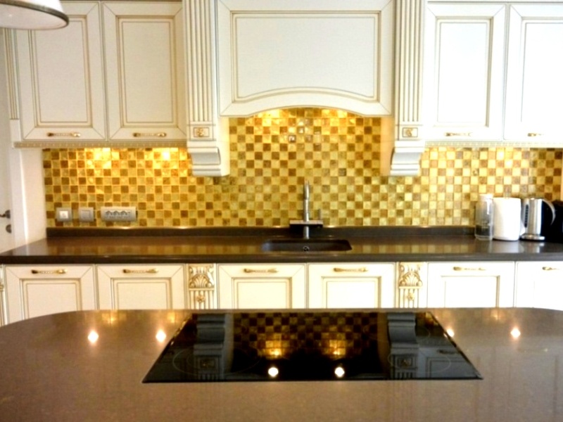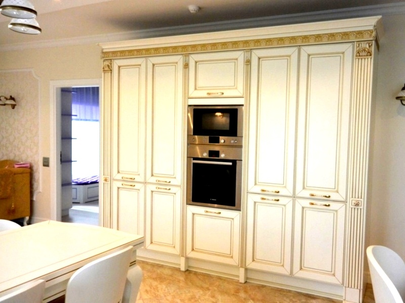 Прихожая квартиры ведёт в просторную госниную, которая объединена с зоной кухни. Кухня оборудована всем, необходимым для комфортного проживания: керамическая плита, духовка, вытяжка, посудомоечная машина, большой холодильник, отделение для хранения вина.