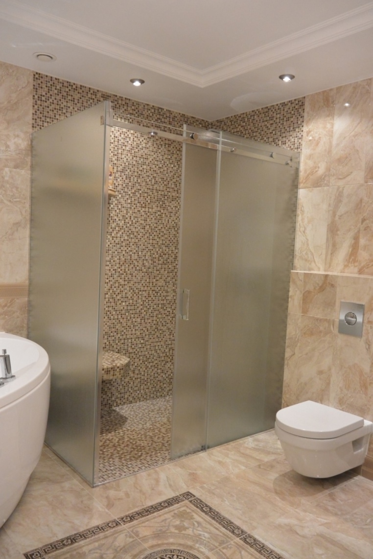 Просторная ванная комната: новая, качественная сантехника (угловая ванная, душ). В ванной комнате - полы с подогревом. Стиральная машина, отдельная специальная раковина для ребёнка.