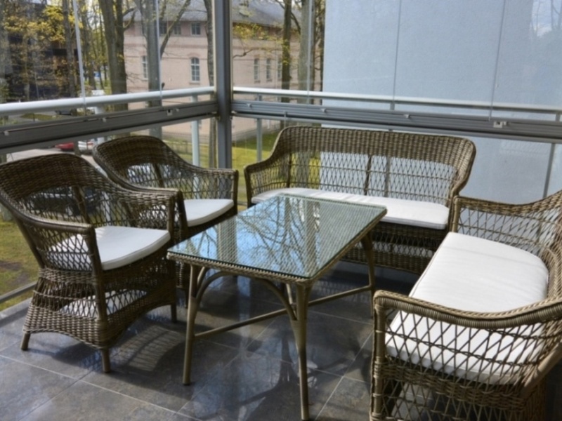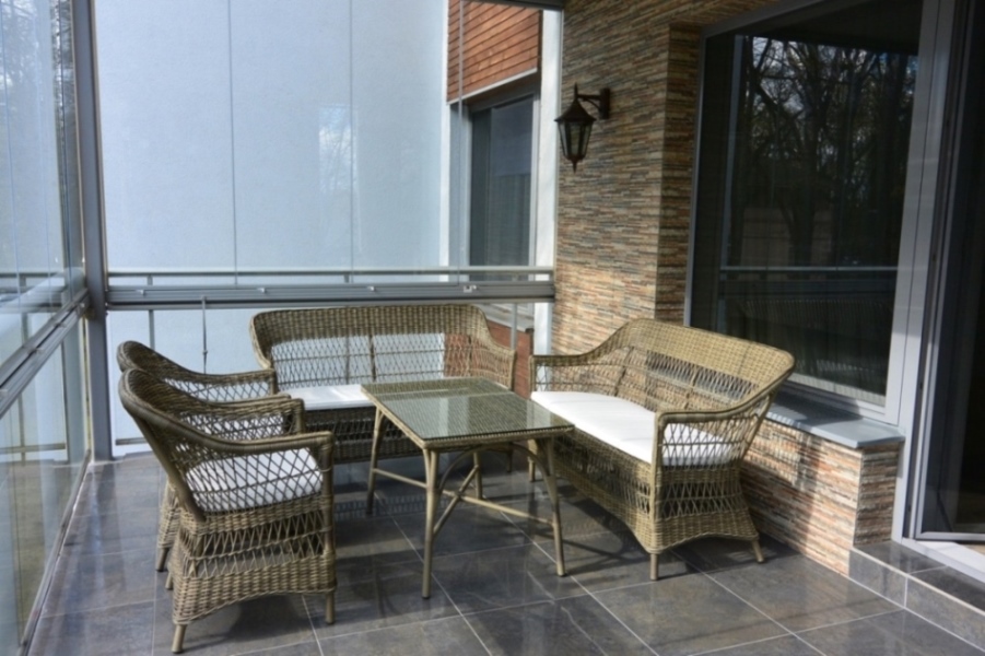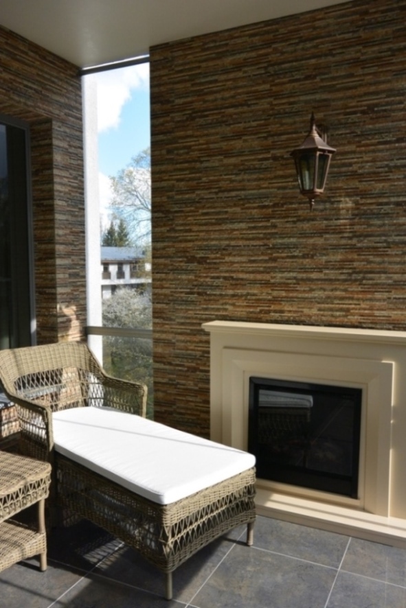 Из гостиной можно пройты на просторную застеклённую террасу, на которой можно наслаждаться прекрасными видами из окон.