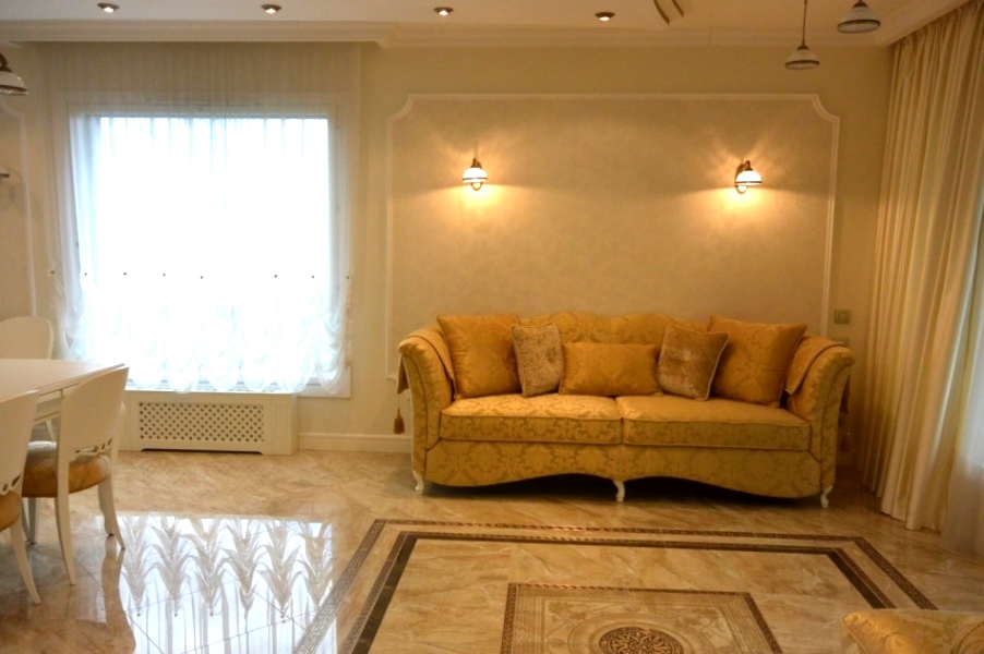 ОПИСАНИЕ КВАРТИРЫ: 3-х комнатная мебелированная квартира площадью 111 кв.м. с продуманной планировкой и изысканным высококачественным ремонтом.