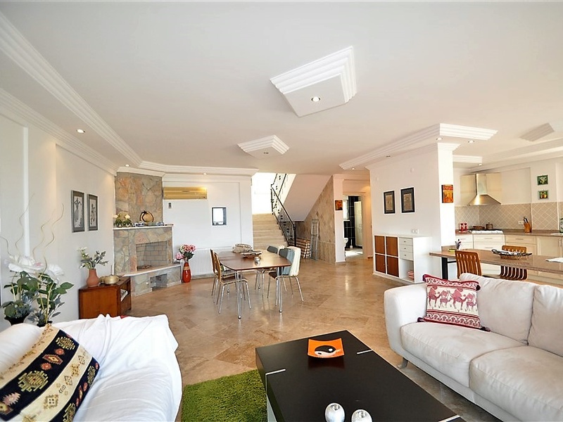 На Средиземноморском побережье в курортном городе Алания в спальном районе Джикчилли агентство недвижимости Stay Property сдает в аренду двухэтажную 4-х комнатную виллу. Вилла находится в шаговой доступности от остановки общественно транспорта. Площадь ее составляет 220 кв.м. На вилле 3 спальни, 1 гостиная с американской кухней, терраса для проведения хорошего отдыха и принятия солнечных ванн, а также джакузи. Вилла полностью меблирована и оснащена бытовой техникой. Из панорамных окон открывается вид на горы, море, город и исторический памятник – Аланийскую крепость. На территории виллы есть плавательный бассейн, сад, гараж для автомобиля, wi-fi интернет, спутниковая антенна, парковка.