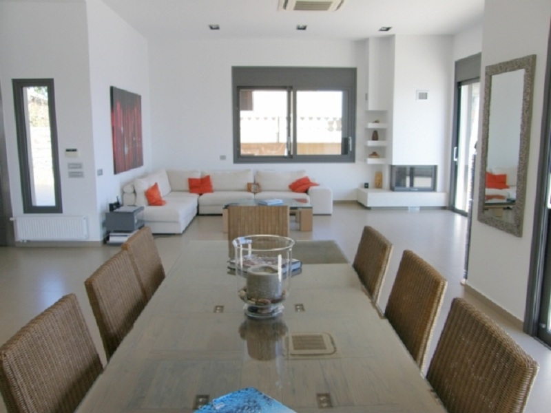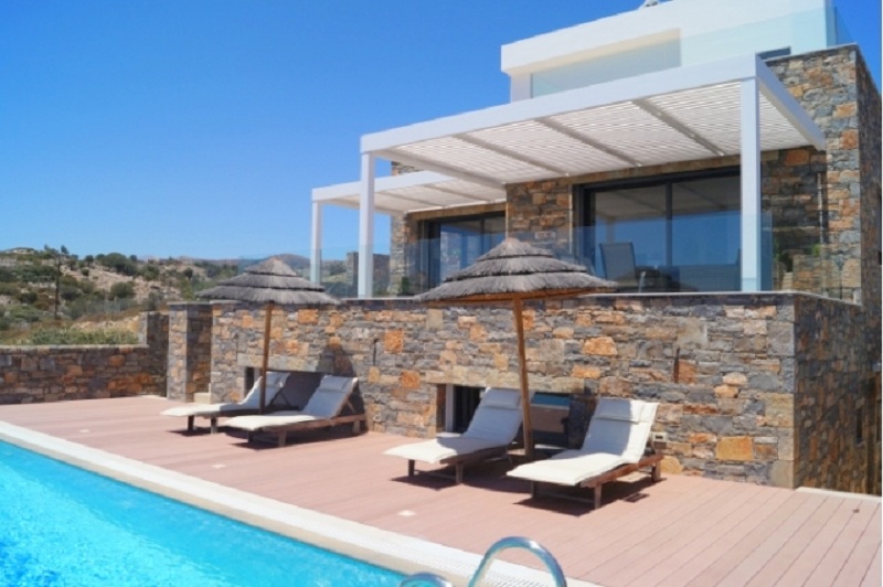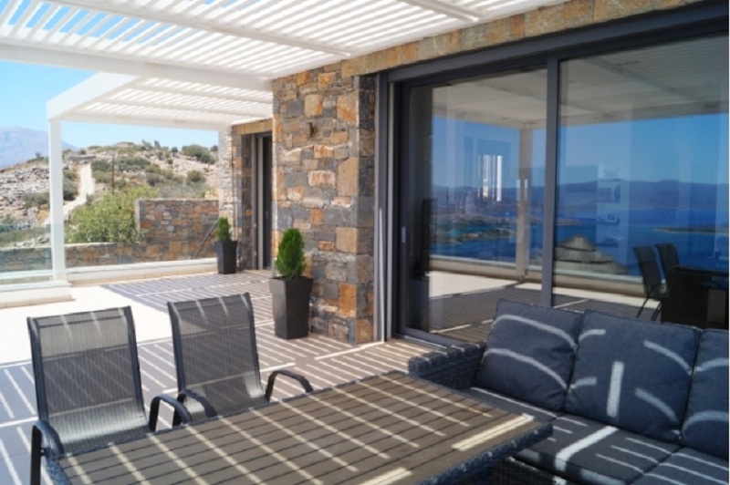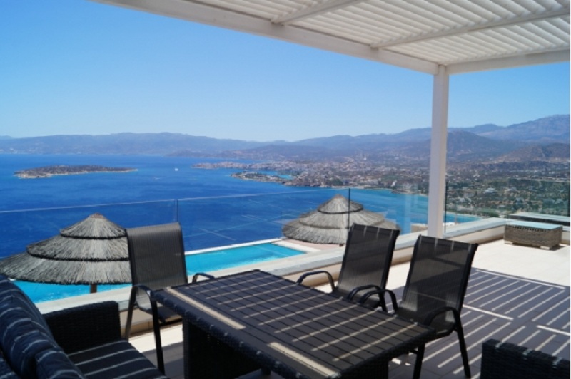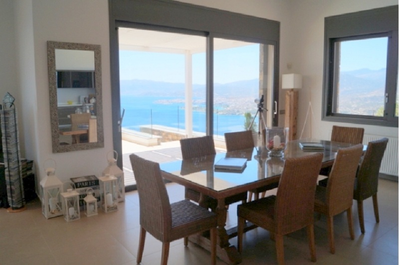 Продается прекрасная вилла общей площадью 450 кв. м., расположенная на участке площадью 2000 кв. м. (20 соток). Дом построен на 5 уровнях. На первой уровне – гараж на четыре автомобиля, тренажерный зал, подсобное помещение, кладовая площадью 60 кв. м. и квартира, которая может быть использована как гостевая. В квартире есть гостиная, кухня, спальня, ванная комната, а также предусмотрен отдельный выход на террасу и к бассейну. На втором уровне – кабинет и еще одна квартира, где есть спальня, салон и ванная комната. На третьем уровне – гостиная с камином, столовая, кухня, туалетная комната и выход на террасу и к бассейну. На четвертом уровне – две большие спальни с ванными комнатами. На последнем, шестом уровне – спальня с ванной комнатой и гардеробной. В этом большом и красивом доме есть лифт, подключено центральное отопление, установлены солнечные панели и кондиционеры, также сигнализация. В доме есть спутниковое телевидение. На участке расположен большой бассейн, терраса, площадка для барбекю, беседка и парковка на шесть машиномест с участка открывается великолепный вид на залив Мирабелло. По убеждению многих туристов, именно здесь красивейшие морские пейзажи на Крите