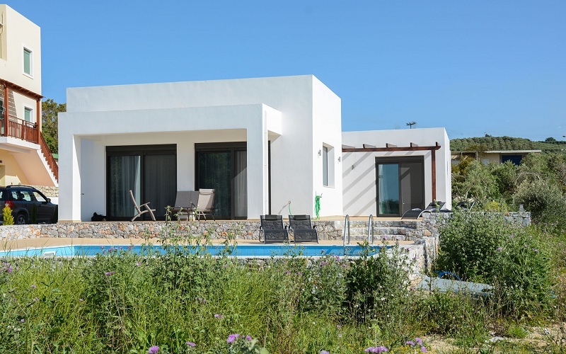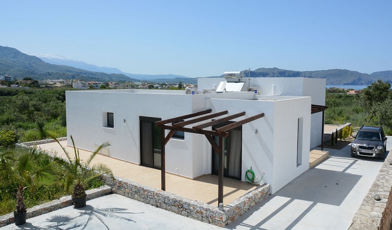 Продаётся новая шикарная вилла площадью 125 кв.м. с великолепным видом на море и горы в п. Драмья области Ханья. Вилла построена в 2016 году с использованием современных технологий строительства и отвечает высоким стандартам качества. Вилла построена на участке площадью 2400 кв. м., с разрешением на дополнительное строительство еще на 400 кв.м. В состав виллы входит: общий салон с кухней, полностью оборудованной бытовой техникой и оснащенной всеми необходимыми кухонными принадлежностями, три спальни с двуспальными кроватями и большими платяными шкафами, две ванные комнаты (одна со стиральной машиной). Все помещения оснащены кондиционерами.
