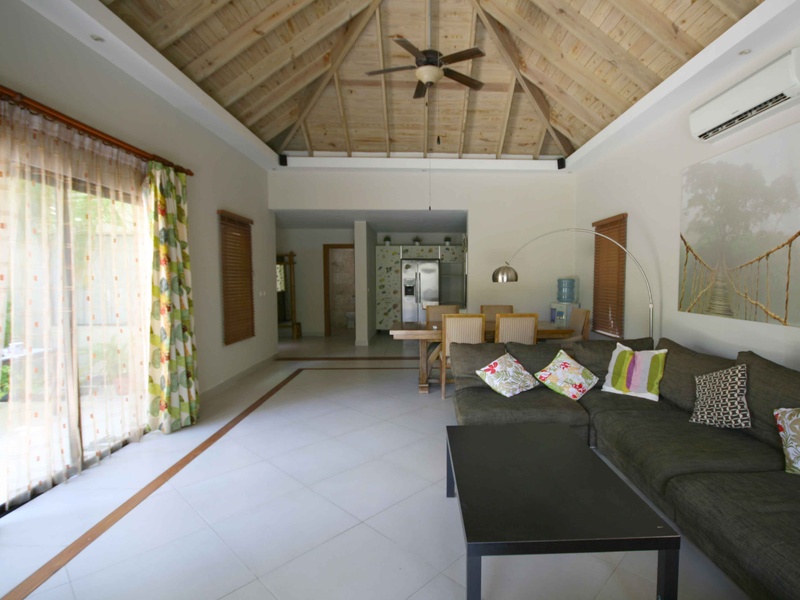 Вилла полностью меблирована и укомплектована всей необходимой бытовой электротехникой. На территории виллы имеется много насаждений тропических деревьев создающих тень.