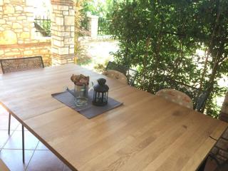 Красивый полностью отреставрированный каменный дом. Всего в нескольких километрах от моря и пляжа. Он состоит из первого этажа и два этажа. На первом этаже есть гостиная и много купрате, на первом этаже большая спальня на втором этаже одна спальня и одна ванная комната. Дом продается полностью меблированная. Благоустроенный двор с твердым покрытием парковки, электрическим забором и садом.