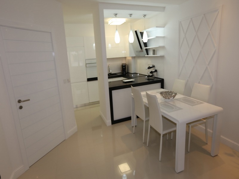 Квартира состоит из просторной гостиной с кухней, спальни, ванной комнаты и террасы площадью 5 м2 с видом на город.