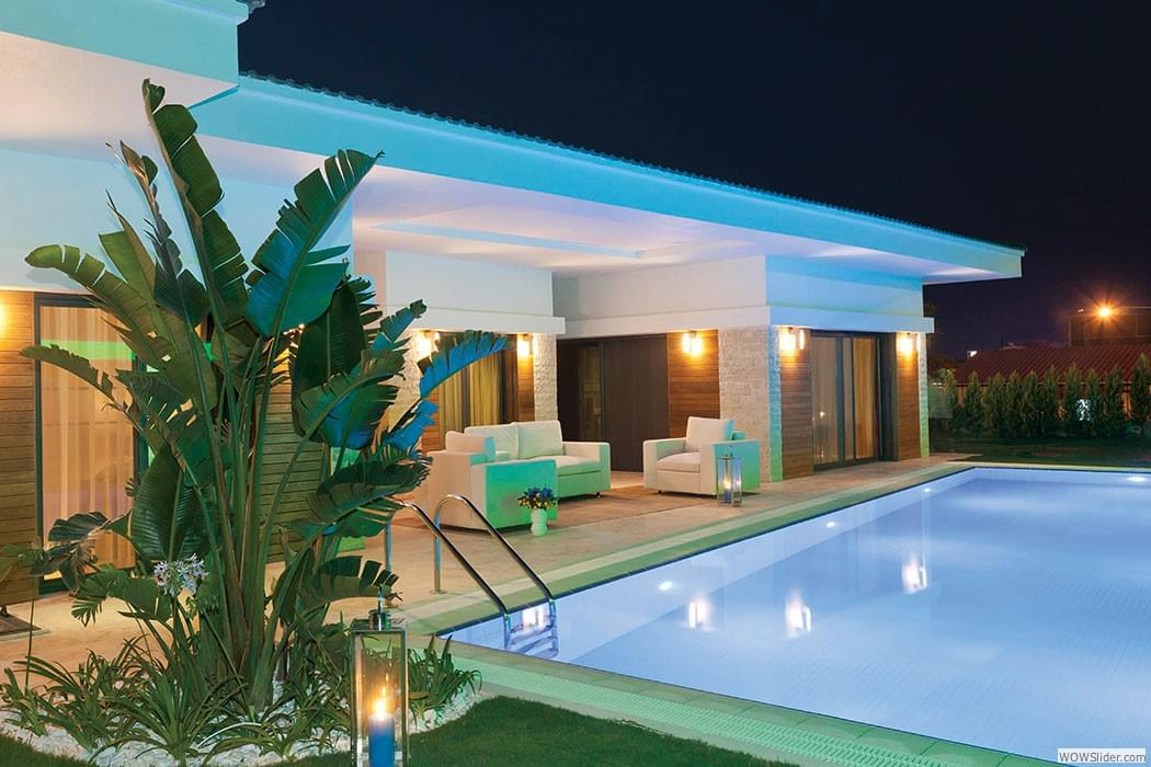 Дом находится в элитном посёлке. При строительстве использованы высококачественные материалы известных производителей. Личный бассейн. Красивое чистейшее море. Теннисный корт.