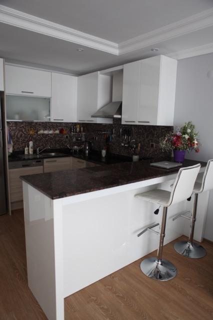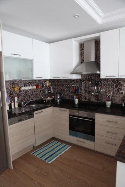 Кухня: американская с барной стойкой. На кухней сейчас стоит набор со столом и стульями, барная стойка вынесена на балкон. На кухне электрическая варочная поверхность, вытяжка, духовой шкаф, посудомоечная машина, холодильник Сименс.