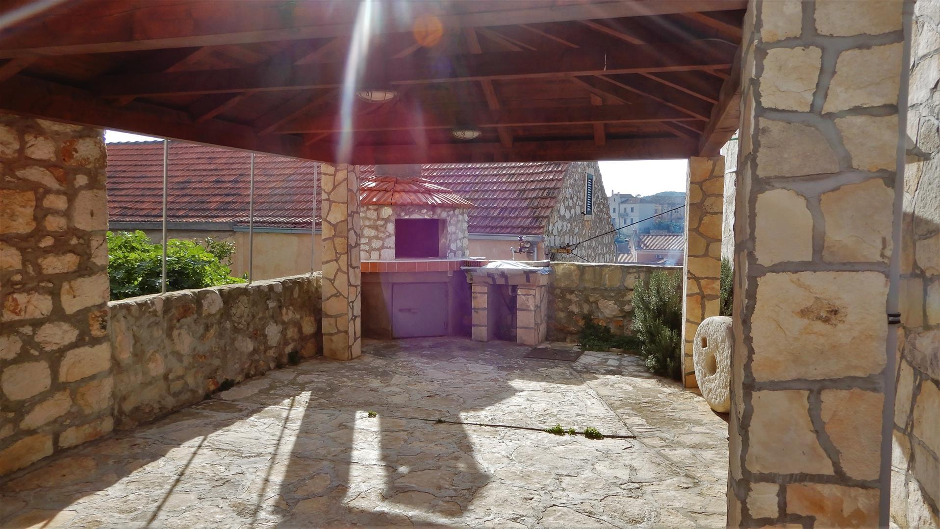 Completely renovated stone house is located in the village of Lastovo on the island of Lastovo. On the ground floor there is a living room with a kitchen, a bedroom and a bathroom with a toilet. Above the ground floor there is a gallery that extends over the entire surface of the house and is used as a bedroom. In a spacious yard with a covered terrace and barbecue there is a newly built cottage with a bathroom and a bathroom. The house is accessible by car and parking is nearby.