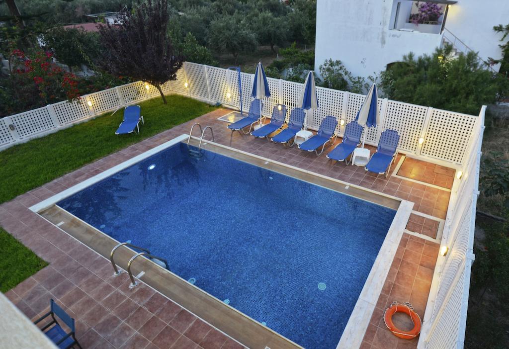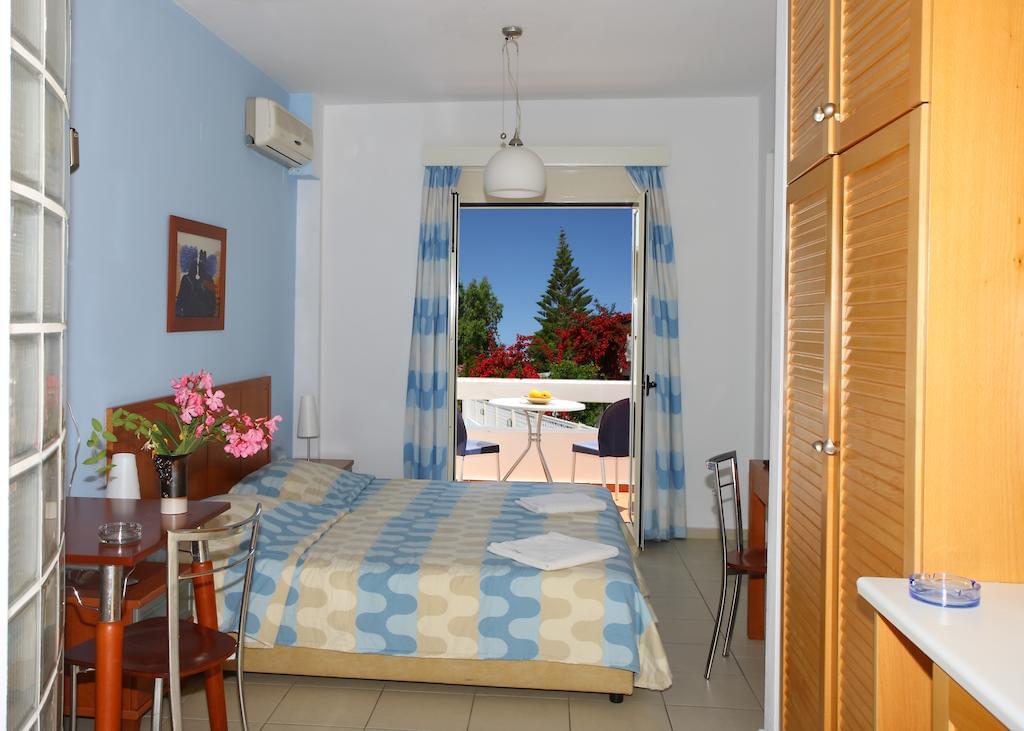 Миниотель имеет вид на море, также есть мебель, солнечные батареи для нагрева воды, кондиционер, тенты, парковочное место, газон, сигнализация, подсобное помещение.