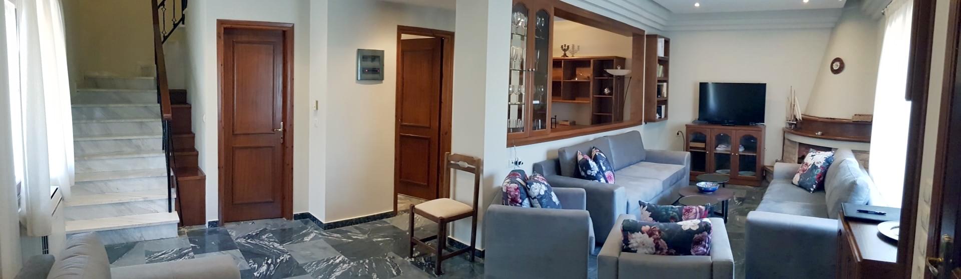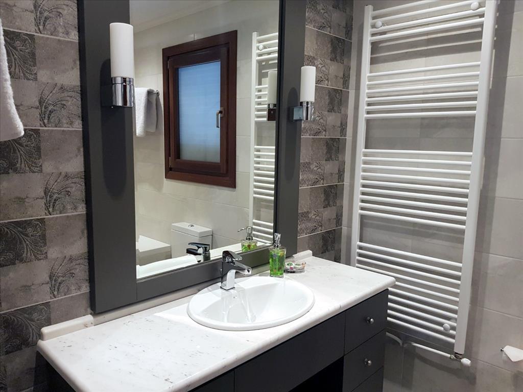 Продается 2-этажный коттедж площадью 166 кв.м на полуострове Афон, региона Халкидики. Первый этаж состоит из гостиной, одной кухонной комнаты, одной ванной комнаты, одной кладовой. Второй этаж состоит из 3 спальных комнат, 2 душевых комнат. Имеет вид на море, также есть мебель, бронированные входные двери, солнечные батареи для нагрева воды, камин, кондиционер, тенты, парковочное место, сад, отопление, сигнализация, подсобное помещение.