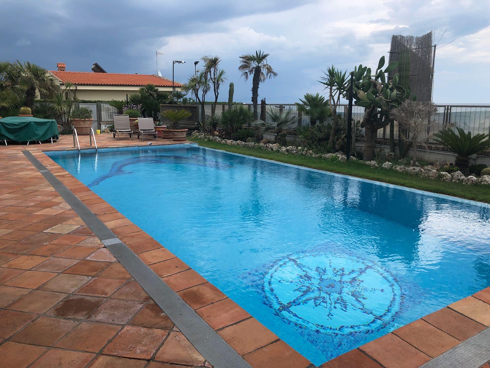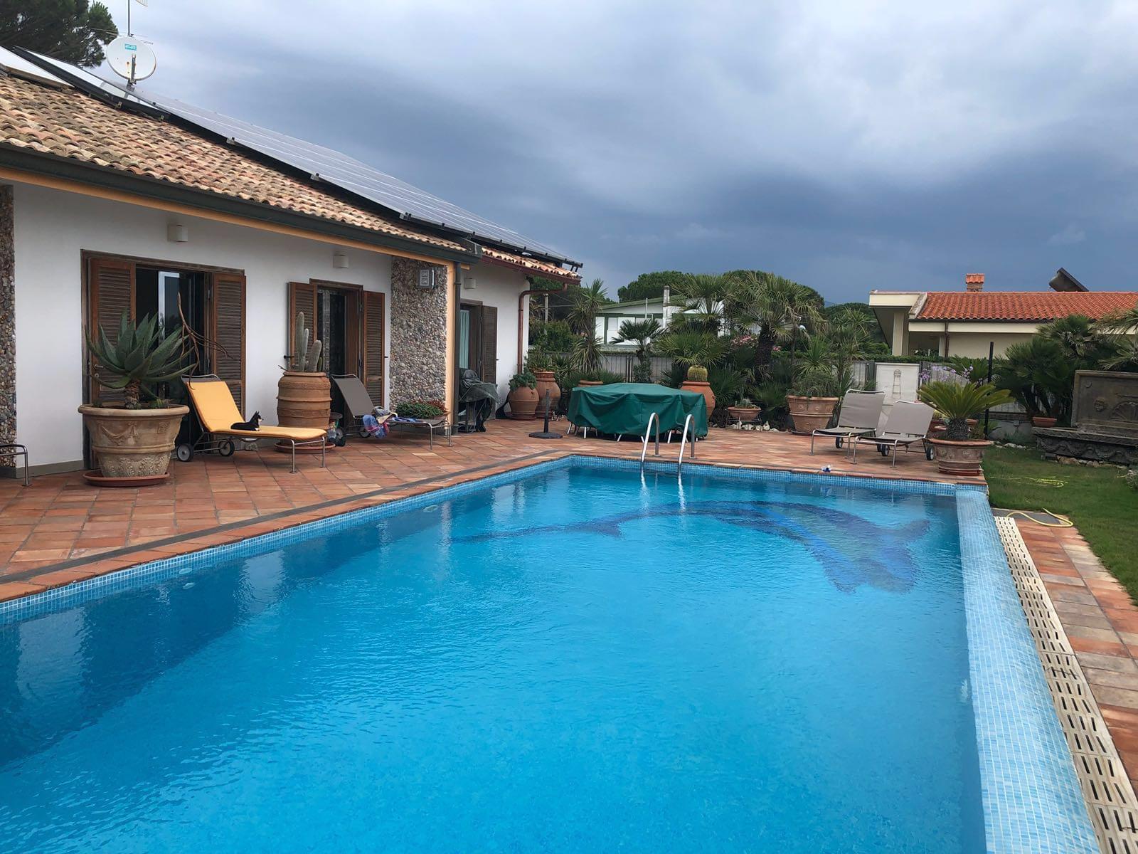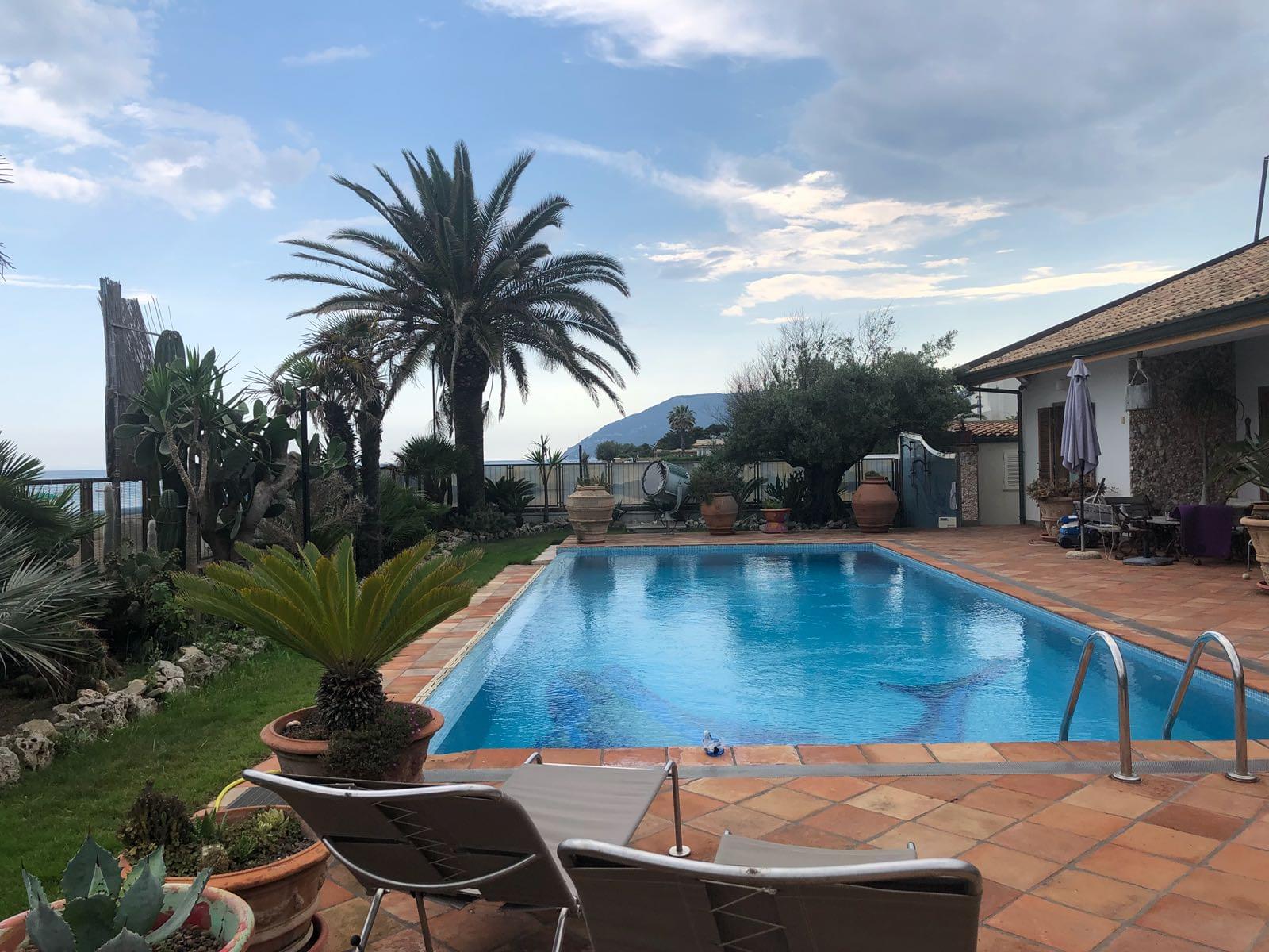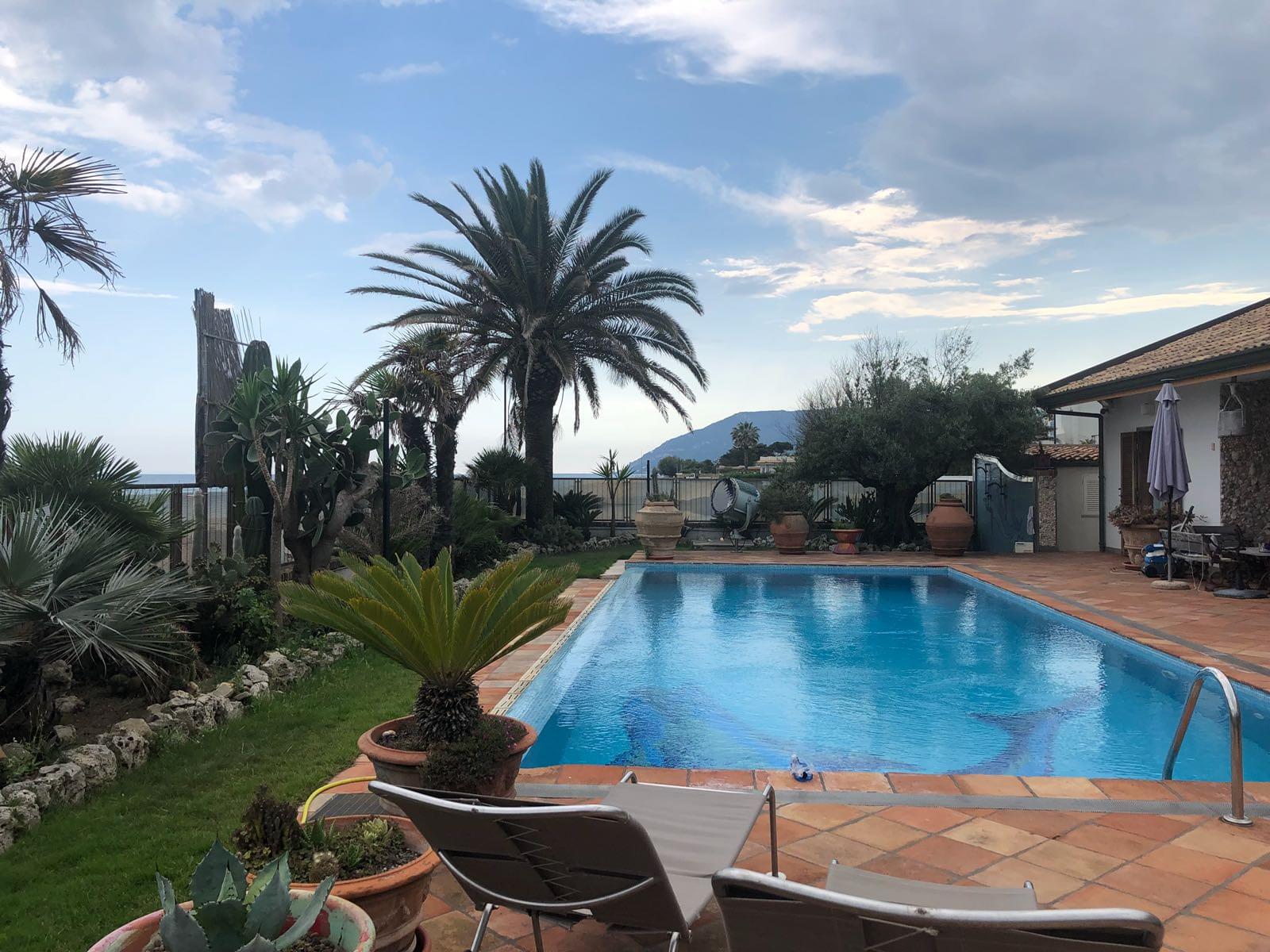Between Terracina and San Felice Circeo prestigious and charming 150 sqm seafront villa with salt water pool and 1000 sqm garden. The property is composed of: double living room, kitchen, 3 bedrooms, 2 bathrooms, video surveillance system, air conditioning, annexe with bedroom and bathroom suitable for domestic or baby sitter. The swimming pool overlooking the sea will make your days unforgettable. Rent August from 14 to 31 September from 1 to 30