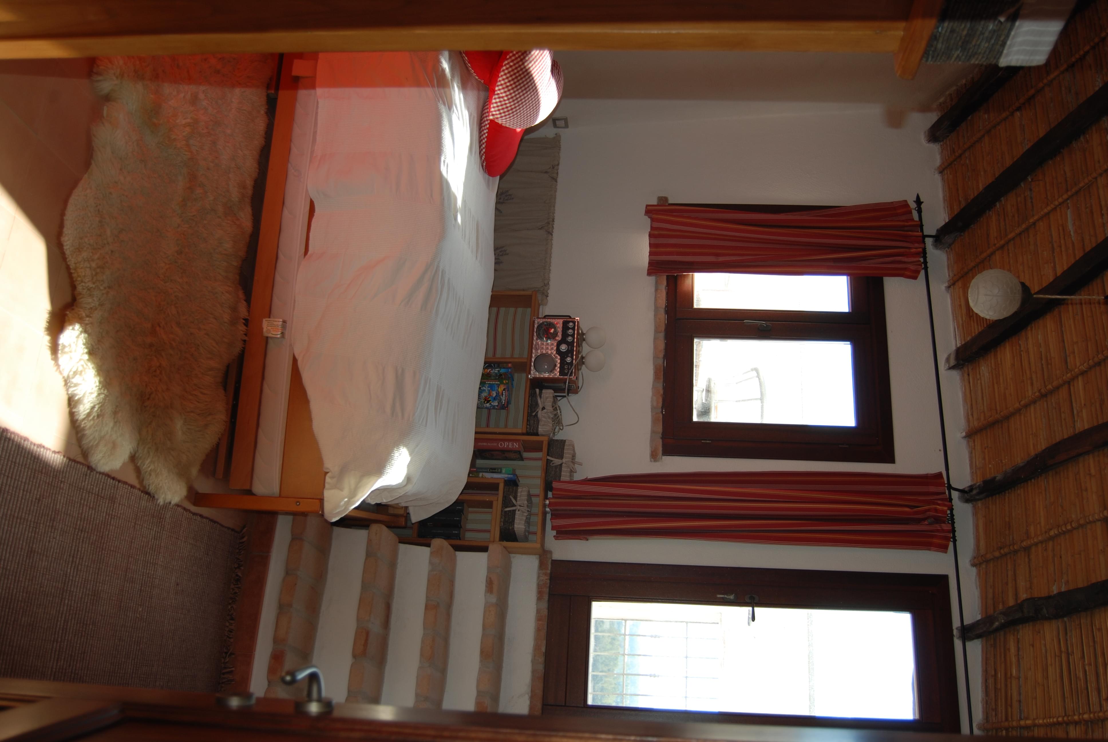 The house combines wonderful antique feeling with modern flair to give an irresistible charm. It is a quarrystone house, the walls are appropriately thick and taper off towards the top. On the ground floor there is a living-dining area with large open fireplace and a fireside bench tempting all to take a few minutes break, a new built-in kitchen with high-quality appliances and a beautiful new bathroom with two windows. All rooms here have a ceiling made from original juniper wood beams and planks. There are still old floor tiles in a warm red colour In the living area, the kitchen and bathroom have been newly tiled. A part of the quarrystone wall has been exposed in the living area.