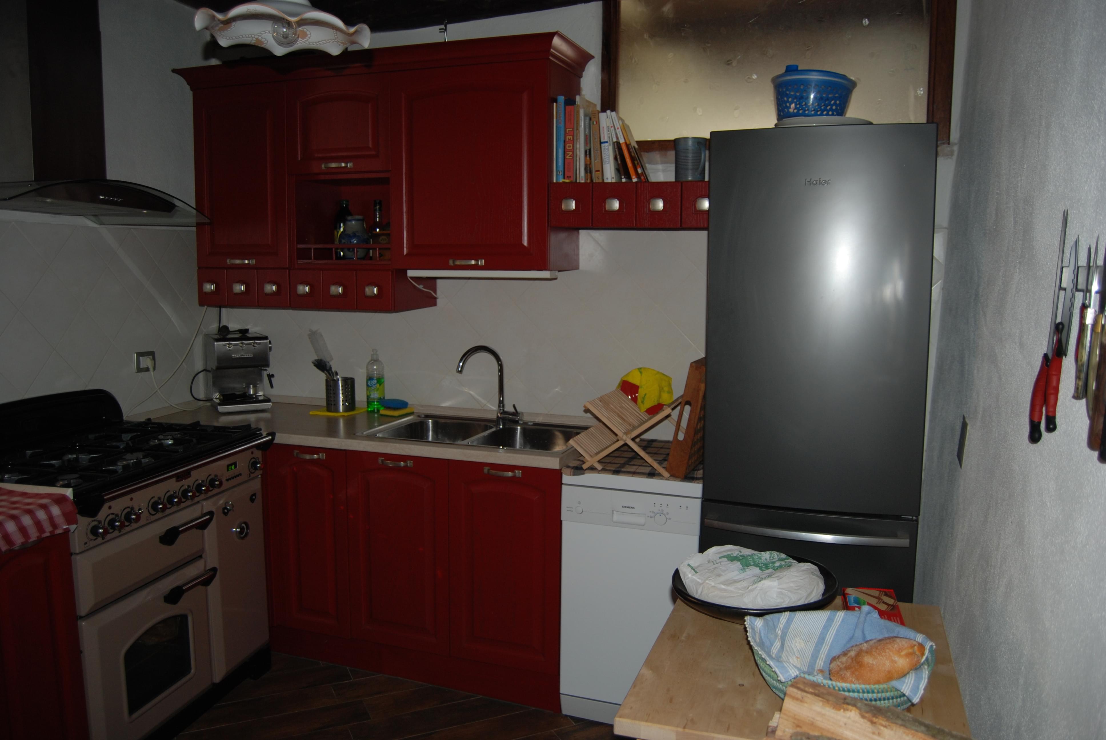 On the upper level there are 2 bedrooms with sea-view and a small terrace with a view of the castle ruin, sea and bordering mountains. The ceilings maintain the typical Sardinian style here, with reed matting between juniper wood beams. The old floor tiling could be saved in both rooms. Similarly, it was decided not to realign any of the walls, everything was newly plastered but the original flowing lines of the walls survived. Plumbing and electrical installations are brand new, all doors and windows throughout the house were replaced; some were even made to measure. For aesthetic reasons real wood window frames and doors were selected. The roof leaked, so was given new insulation and coating. All windows have a built-in insect screen, which can be pulled up and down like blinds. There is satellite TV with German stations, a landline telephone connection for good Internet access, the fireplace has a ventilator to guarantee a soot-free atmosphere even in problematic weather conditions. As the water supply is sometimes limited, a 500 l tank has been installed. “Ange” lies in the middle of the historical part of Posada. Residents can drive their car up to the house, but no through-traffic is permitted.