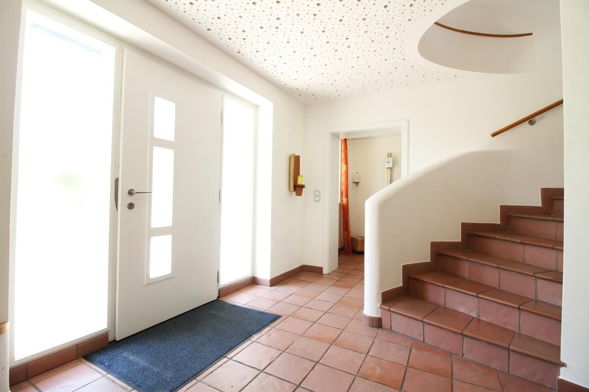 Die Decken im Eingangsbereich und im "Kinderflügel" sind mit Schallschutzpaneele ausgestattet, damit die Kinder toben können ohne dass man im Obergeschoss gestört wird.
