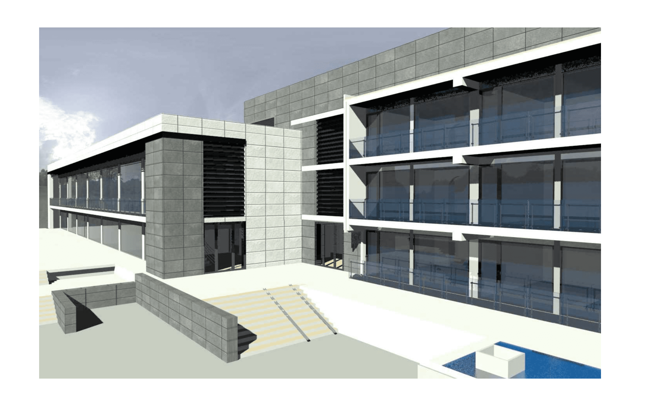The hotel is a newly built complex, the external facades are completed, and the rooms of the