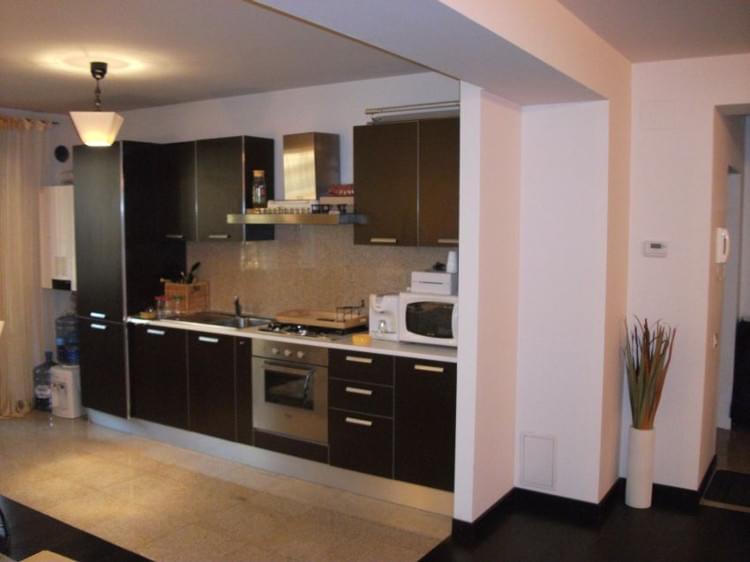 The apartment consists of living room (furnished), two bedrooms (semi-detached), open space kitchen (fully furnished), three balconies (two enclosed), two bathrooms (large bathtub and small shower). The apartment has: doors, parquet, furniture Wenge kitchen, Ariston appliances (refrigerator, dishwasher, gas hob, hood) Bosch apartment heating system, quality finishes, including travertine, at the basement of the block parking place + box. The apartment is 10 minutes away from: - the Baneasa Shopping Center shopping mall - Baneasa Airport - Otopeni Airport - subway.