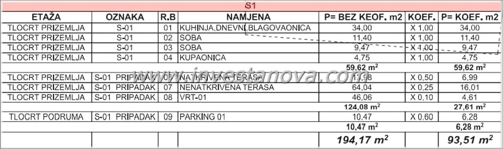 Квартира S1: 93,51 м2 x 1800 € м2 = 168 318 €