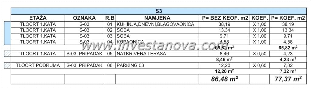 Квартира S3: 77,37 м2 x 1950 € м2 = 150 871 €