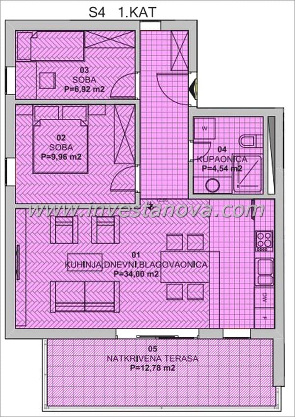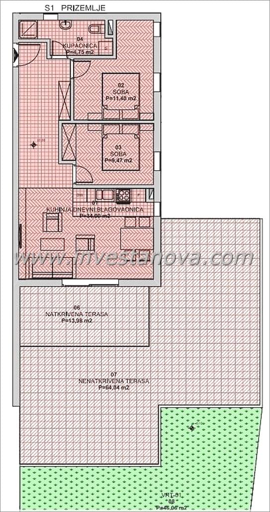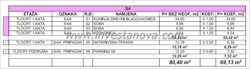 Квартира S4: 69,13 м2 x 1950 € м2 = 134 803 €