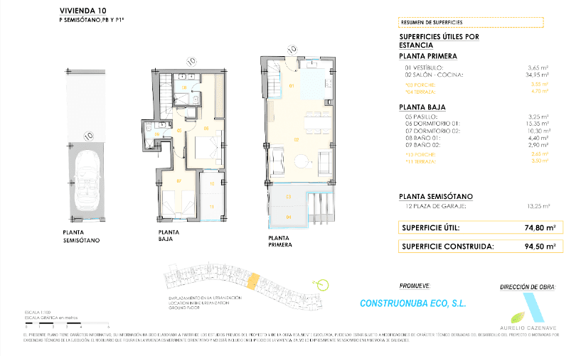 The townhouse consists in the basement of: 2 bedrooms, 2 bathrooms one of them en suite, and access to a small terrace. On the 1st floor we find a large open plan living -/ dining room with an equipped kitchen and a wonderful terrace with spectacular views of the Guadiana River and Portugal. When it comes to equipment, you have pre-installation of solar panels, pre-installation of air conditioning, fully equipped kitchens with Siemens brand appliances and access to a private garage in the basement.