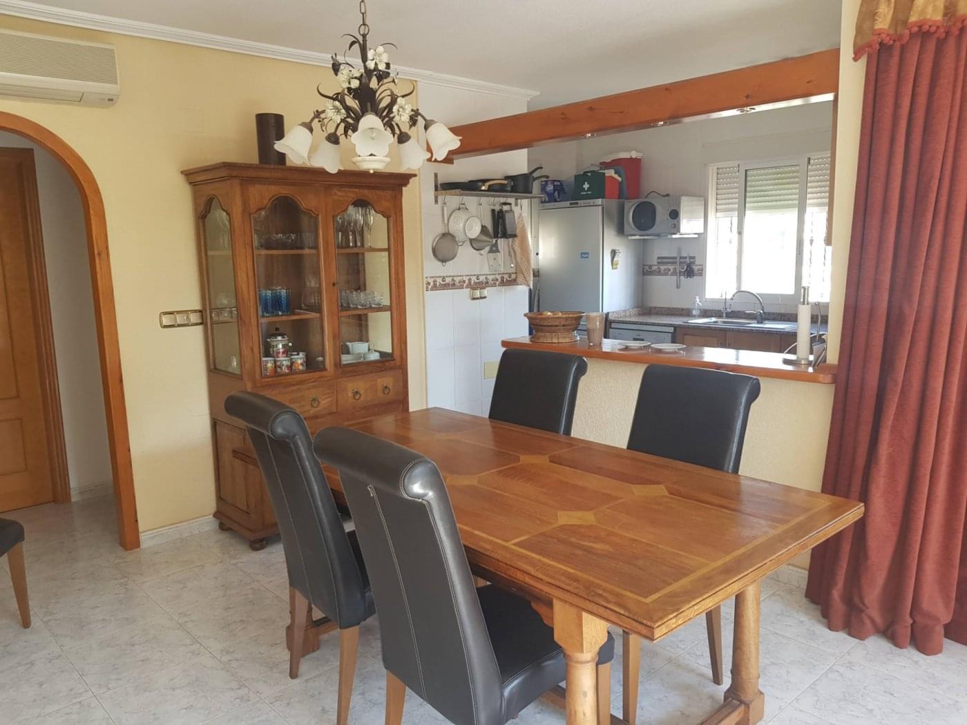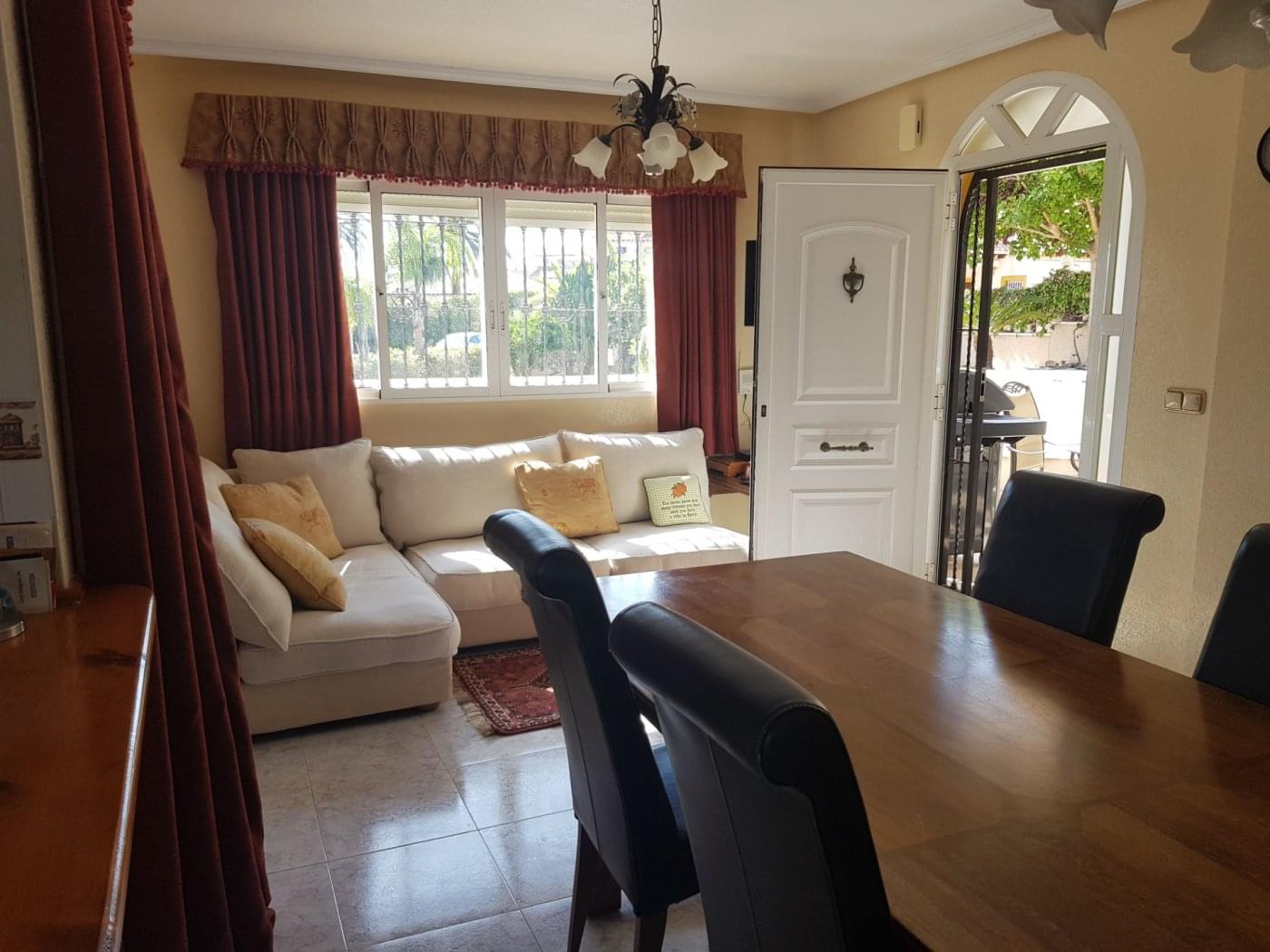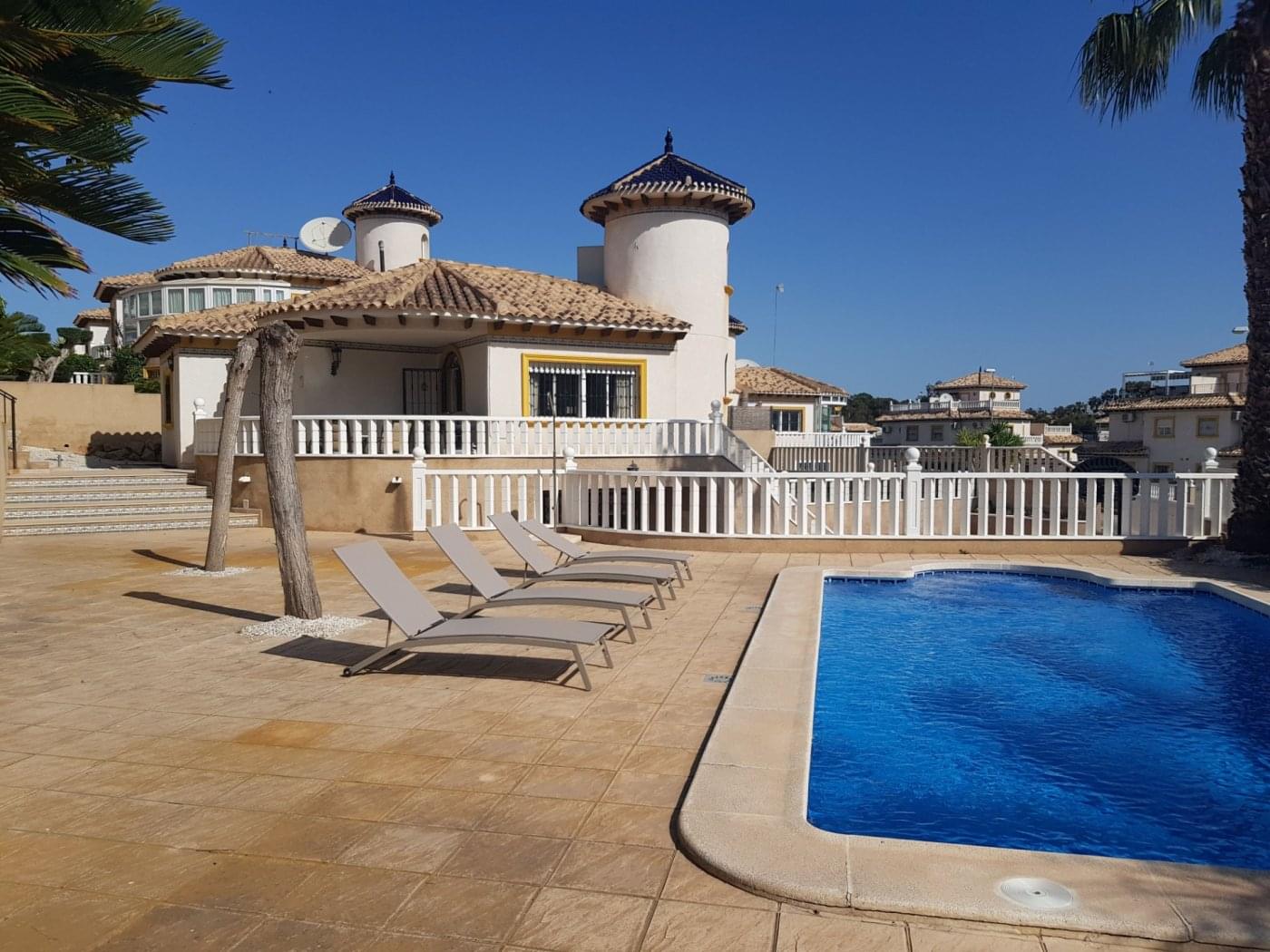 Magnificent house in VILLAMARTIN, located on a 780 m2 plot. The house is built on one level, where there are 3 bedrooms, 2 bathrooms, a living room with access to an open terrace and a large open kitchen. An internal staircase leads to the basement, where there are 2 large bedrooms, a bathroom and a living room. There is also a solarium with great views. The plot has a swimming pool, parking space for 2 cars. This spacious and sunny house is perfect for living all year round or for vacations. Convenient access to shops, restaurants, bars, malls. Just 5 Km. from the best beaches of Orihuela Costa.