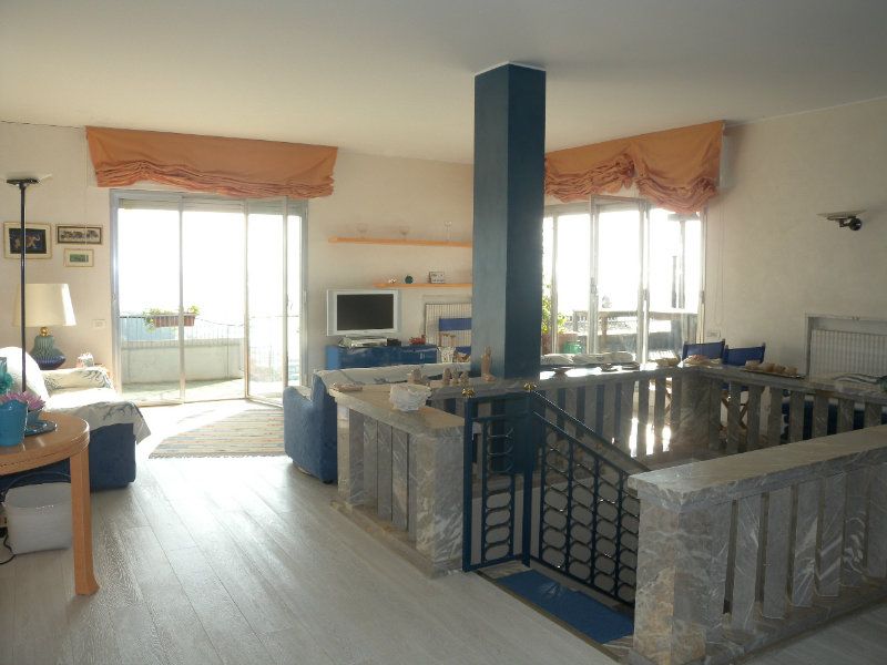 Первый уровень: прихожая с лифтом, ведущим прямо в аппартаменты, просторная гостиная с зоной столовой и выходом на панорамную террасу (южное расположение) площадью 50 кв.м. с великолепным видом на море и город. Также из гостиной имеется выход на вторую террасу площадью 15 кв.м. с видом на бассейн комплекса. Также на этом этаже имеется отдельная большая кухня, две спальни (одна из которых - сьют с собственной ванной комнатой, гардеробной и террасой), ванная комната с большой душевой кабиной.