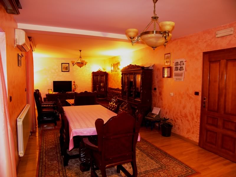 Большинство мебели — ручной работы, из цельного дерева или досок без имитации. В гостиной находится дорогая мебель из цельного дерева ( черешня) ручной работы. Трехместный диван, двухместный диван, кресло, столик, комод для тв, стол для 8 персон, 8 стульев.