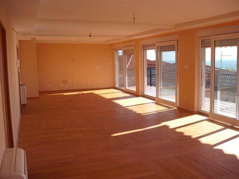 Второй этаж. Площадь апартамента 110 м.кв. Состоит из огромной гостиной - 70 м.кв. с террасой 29 м.кв., кухни, трех спален, двух ванных. Центральное отопление. Частная, закрытая парковка. Панорамный вид на море!
