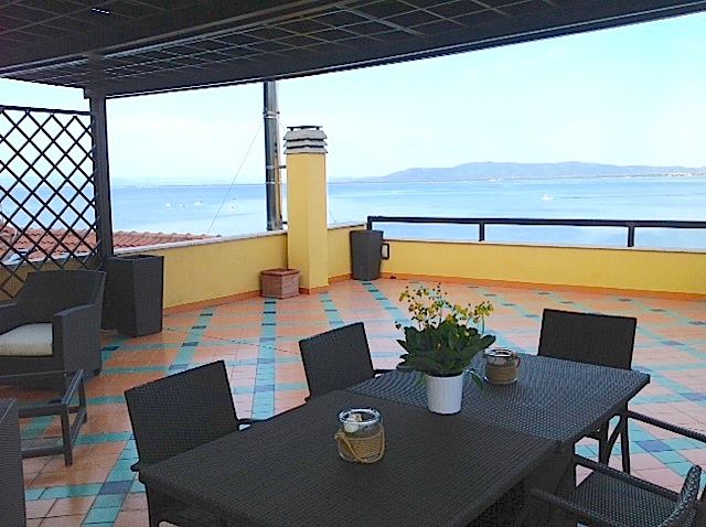 Предлагаем на продажу двухуровневый пентхаус, расположенный на улице Via del Molo, живописной улице Порто Санто Стефано, с прекрасным видом на море. Квартира состоит из гостиной с камином, кухни с террасой 25 кв.м., 3 спален, ванной комнаты на нижнем этаже; на верхнем находится спальня, кладовая, 2 ванные комнаты, одна из которых с душем, 2 террасы 70 кв.м. и 9 кв.м., просторный коридор и мансарда с видом на главную террасу. Пентхаус недавно отремонтирован; при ремонте использовались высококачественные материалы.