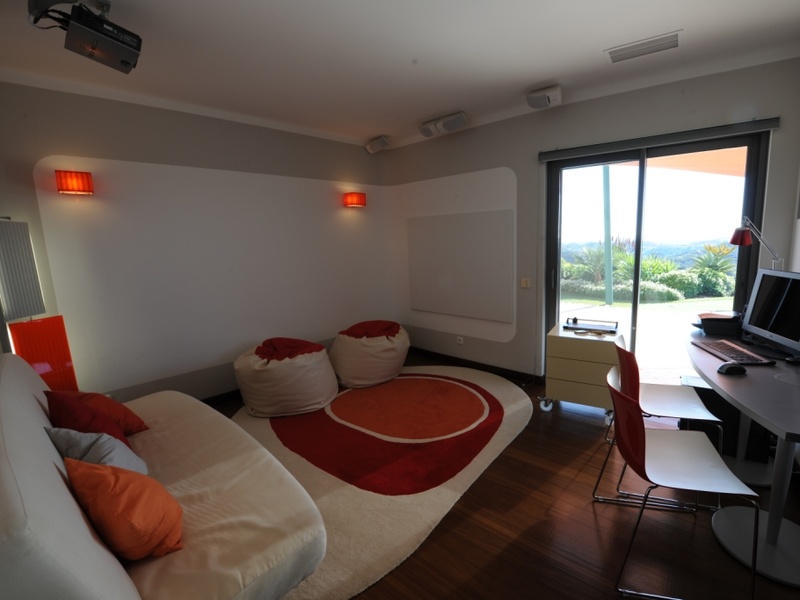 Рядом с домом есть парковка с деревьяным покрытием и гараж для 4 автомобилей. Также имеет гостевую комнату с кухней, ванной комната. Кинозал оборудован проекторомю