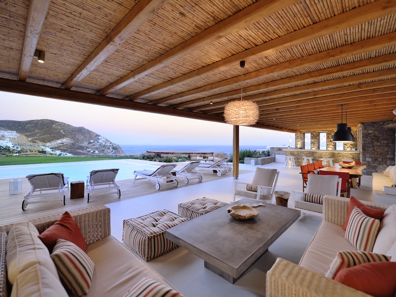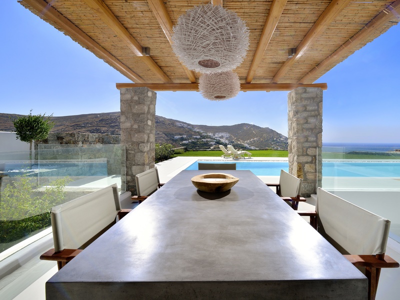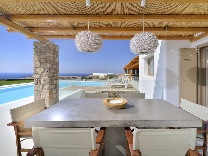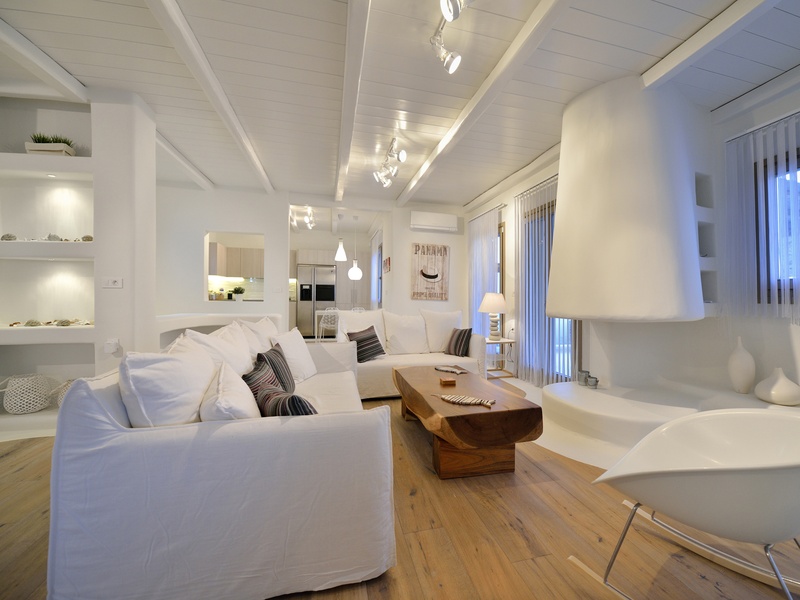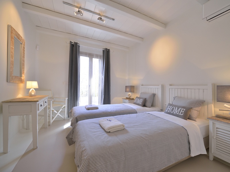 Вилла современна и проста,с роскошью сливается в одно целое,полная дизайнерская отделка,мебель от известных современных домов!Вилла расположена в жилом комплексе из 5 вилл,каждая имеет свой отдельный бассейн.Вилла 220кв.м. 4 спальни и еще одна для обслуживающего персонала,так же есть 4 ванных комнаты,камин,полное кондиционирование.Выходим к бассейну,здесь игра белых красок в сочетании с зеленым газоном и деревянной отделкой пола вокруг бассейна,создает впечатление полного релакса.В баре,который находится рядом с бассейном можно пропустить стаканчик...а большой обеденный стол на свежем воздухе готов принять большую компанию!Считаем нужным еще раз отметить работу дизайнера по выбору мебели и внутреннему оформлению виллы,на полах и стенах в ванных комнатах особенная белая краска и она доминирует на полах всей виллы.Вилла находится на возвышении и имеет красивый панорамный вид на пляж Элиа,что в переводе на русский значит оливка.Кстати добраться до этого пляжа можно пешком,можно на машине,вам решать,всего-то 700 метров от виллы!Сдается не меньше чем на 7 дней.