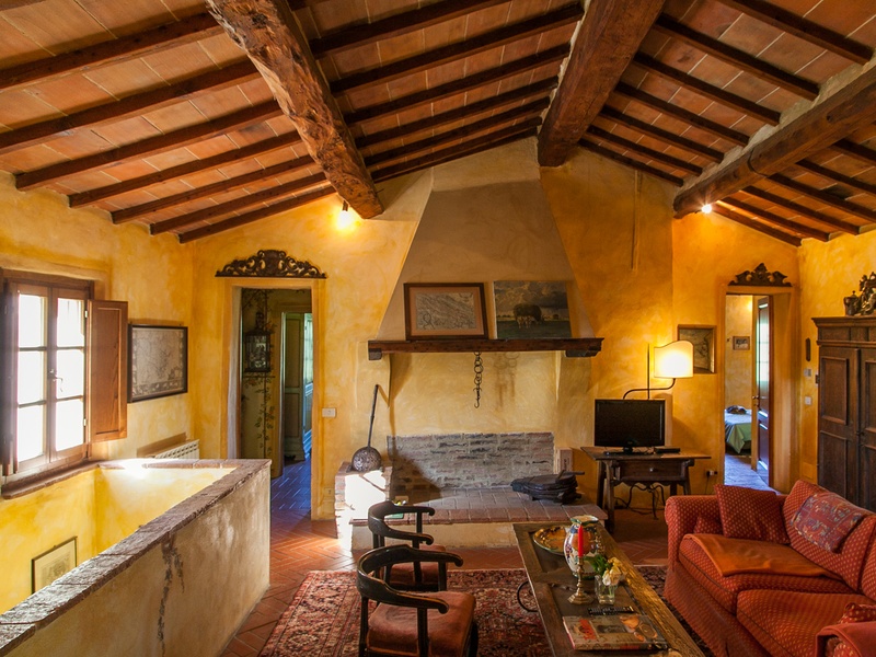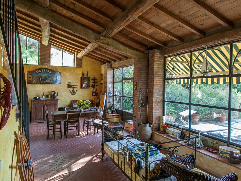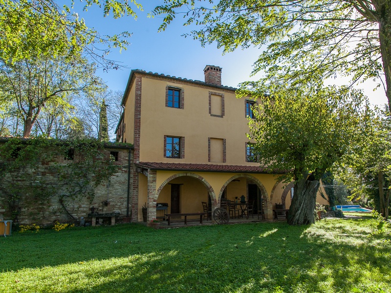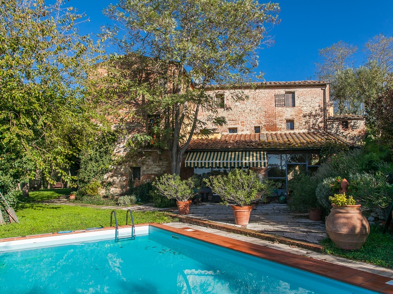Здания: имение состоит из главного дома с соседней пристройки-лимонария, сарая 60 кв.м. и небольшого гостевого дома с дровяной печью. Дом принадлежал богатой итальянской семье Пикколомини, со времен Средневековья здесь была древняя башня. Последующие владельцы вносили свои изменения в структуру до достижения современного его вида. Тщательная реставрация помогла сохранить все оригинальные черты здания с его старинными терракотовыми полами и деревянными дубовыми балками. Трехэтажное здание занимает площадь около 330 кв.м. На первом этаже дома располагается небольшая однокомнатная квартира с отдельным входом, спальней, ванной комнатой, кухней и столовой. Также на этом этаже находится большая столовая с камином, кухня, ванная комната, гостиная и кладовая. На первом этаже располагается просторная гостиная с камином, кабинет, спальня с ванной комнатой, 3 спальни, кабинет и ванная комната. На цокольном этаже имеется спальня с ванной комнатой, погреб из туфа и большая гостиная с окнами, которые выходят на бассейн.